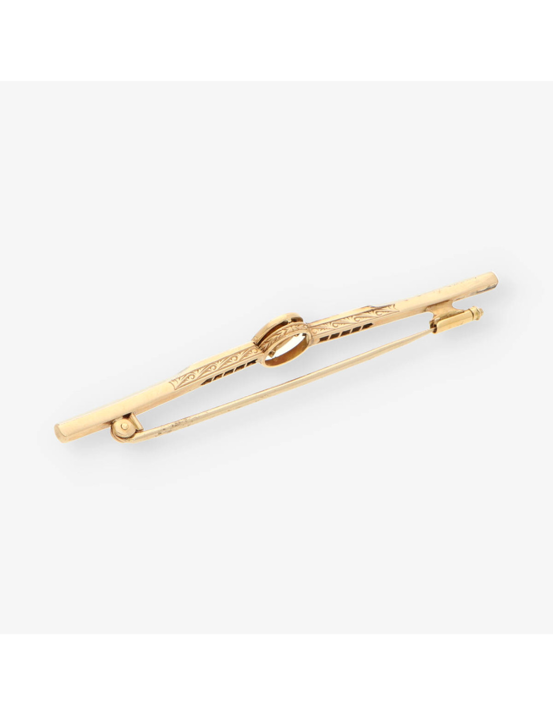 Esta elegante aguja de segunda mano está confeccionada en oro amarillo de primera ley, con un peso de 4.8 gramos y dimensiones de 7 cm de ancho por 0.8 cm de alto. Adornada con un diamante que aporta un toque de sofisticación y brillo, esta pieza es ideal para quienes buscan un accesorio distintivo y refinado. Perfecta para añadir un detalle de lujo a cualquier atuendo.