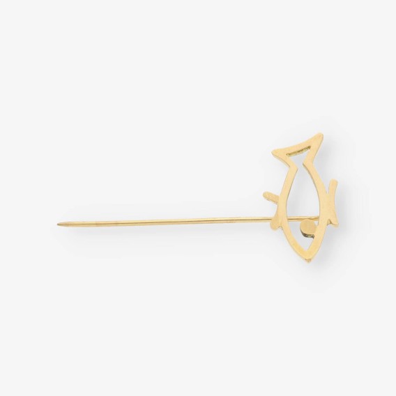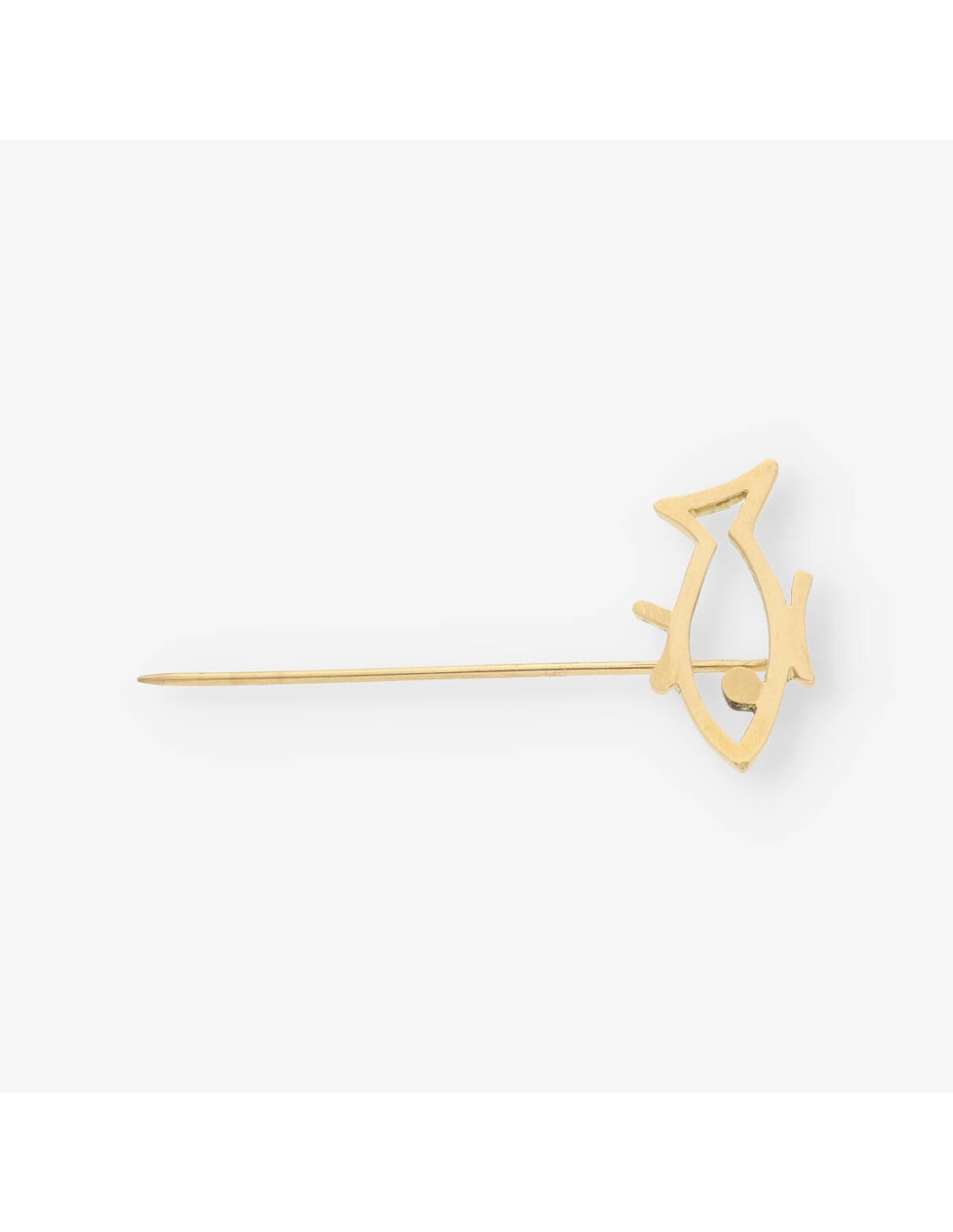 Preciosa  aguja de segunda mano en oro amarillo de primera ley. Alto: 4.6cm. Ancho: 2.2cm. Peso: 2.2gr.