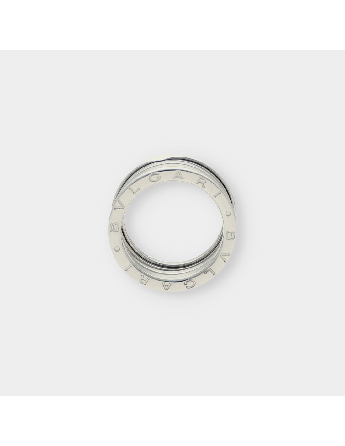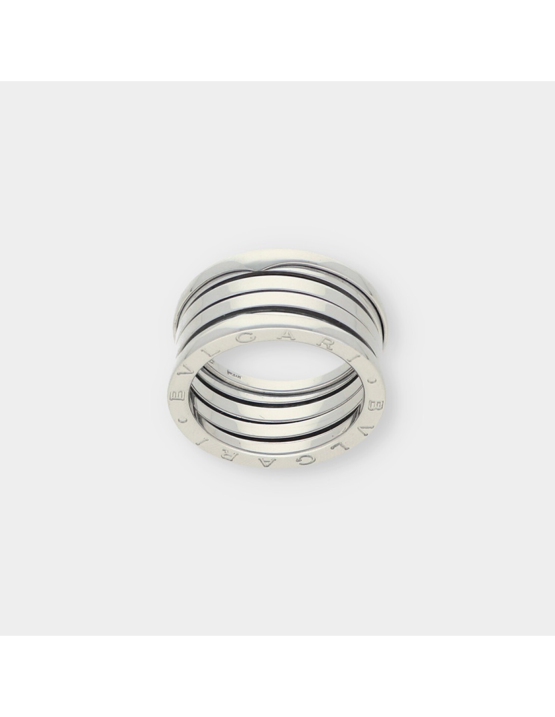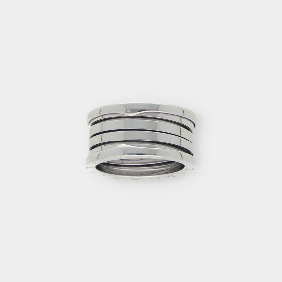 Precioso anillo Bulgari  en oro blanco de primera ley de 4 bandas. Una pieza ideal para los amantes de la firma. Talla: 19 (59). Peso: 12.2gr.