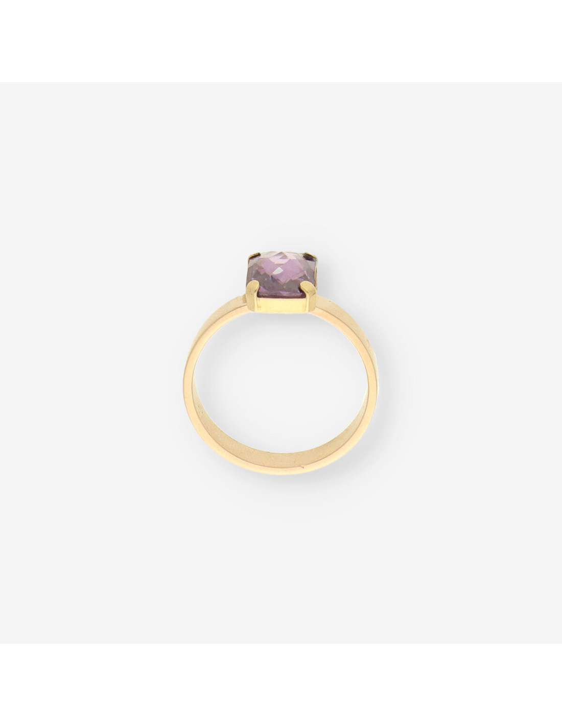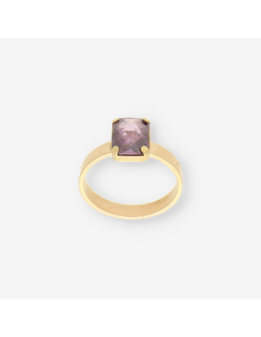 Este delicado anillo de segunda mano está elaborado en oro amarillo de primera ley, adornado con una hermosa piedra lila que aporta un toque de color y sofisticación. Con una talla 16 y un peso de 4.2 gramos, es una pieza sutil que se adapta perfectamente a cualquier ocasión. La piedra lila, cuidadosamente engarzada, resalta la elegancia del diseño, haciendo de este anillo una elección ideal para quienes buscan una joya única y encantadora.