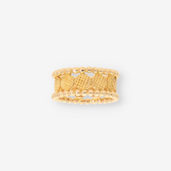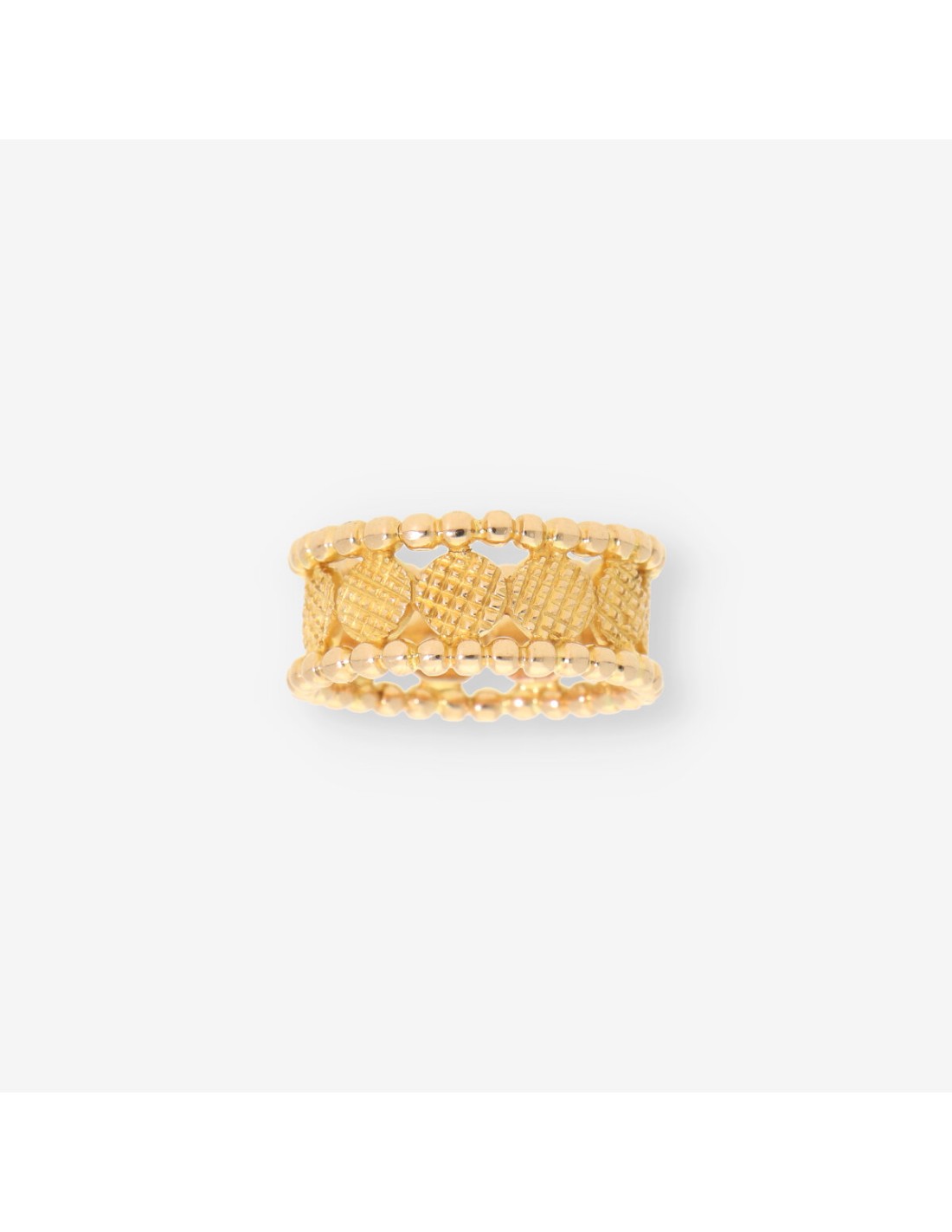 Este elegante anillo de segunda mano, elaborado en oro amarillo de primera ley, pesa 8.2 gramos y está disponible en talla 14. Su diseño intrincado y textura detallada lo convierten en una joya que destaca por su originalidad y estilo. Perfecto para quienes buscan un accesorio que combine modernidad y elegancia, este anillo es ideal tanto para el uso diario como para ocasiones especiales. La calidad del oro y el acabado meticuloso aseguran su durabilidad y atractivo atemporal, convirtiéndolo en una pieza esencial en cualquier colección.