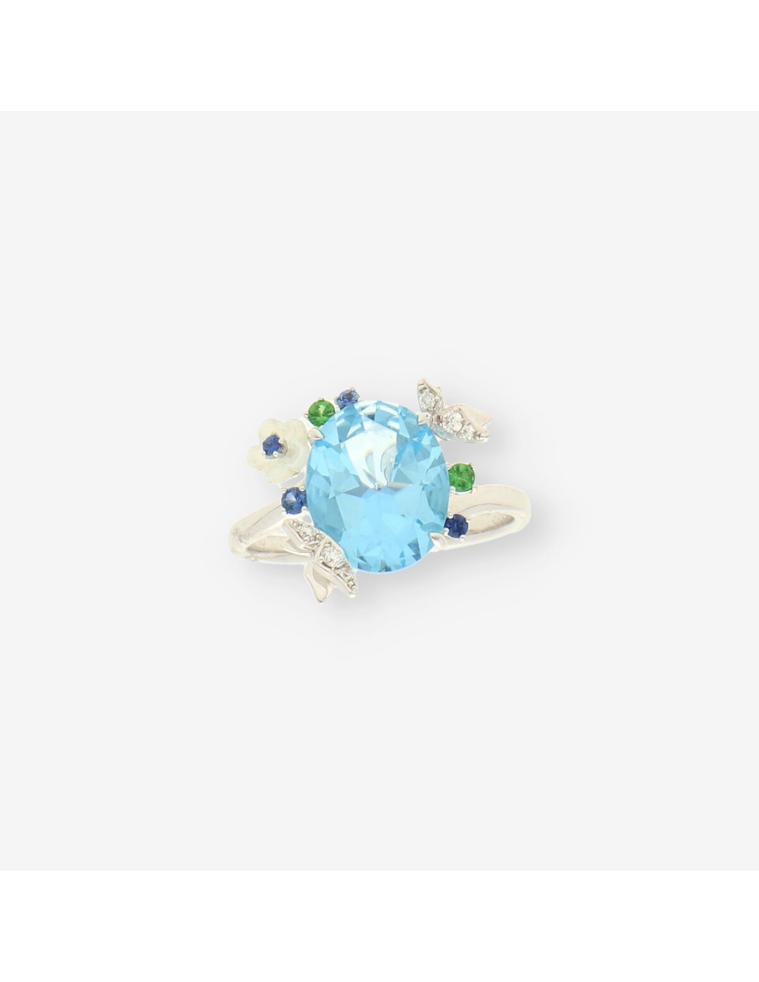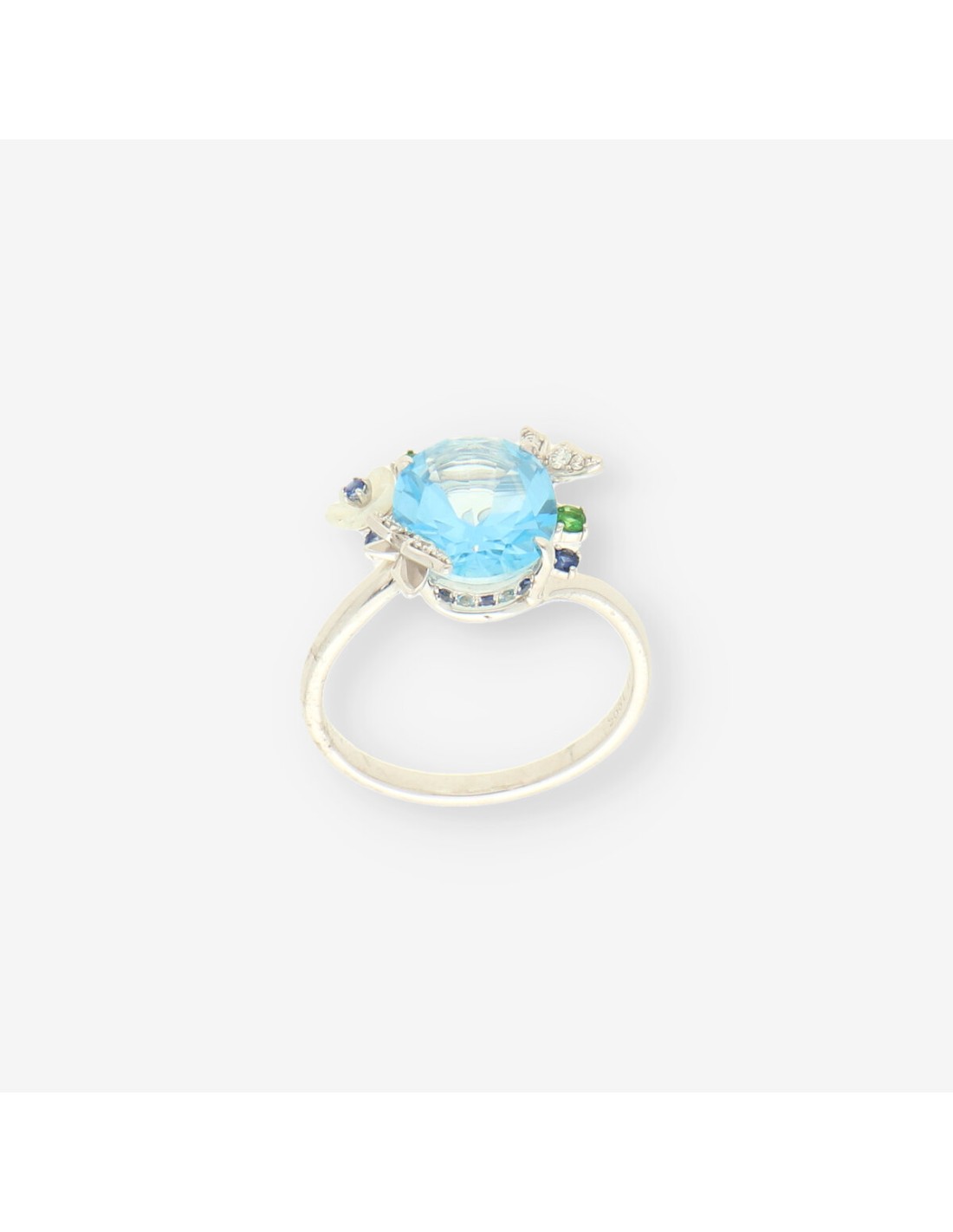 Anillo de Oro Blanco 18kt con Topacio Azul y Brillantes