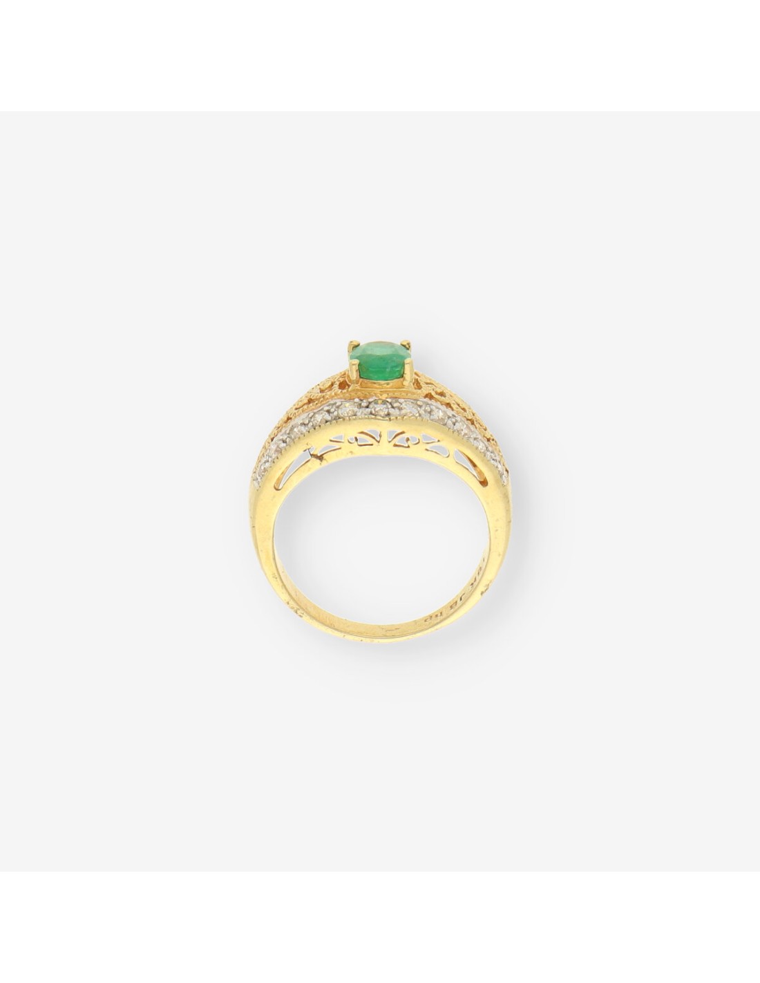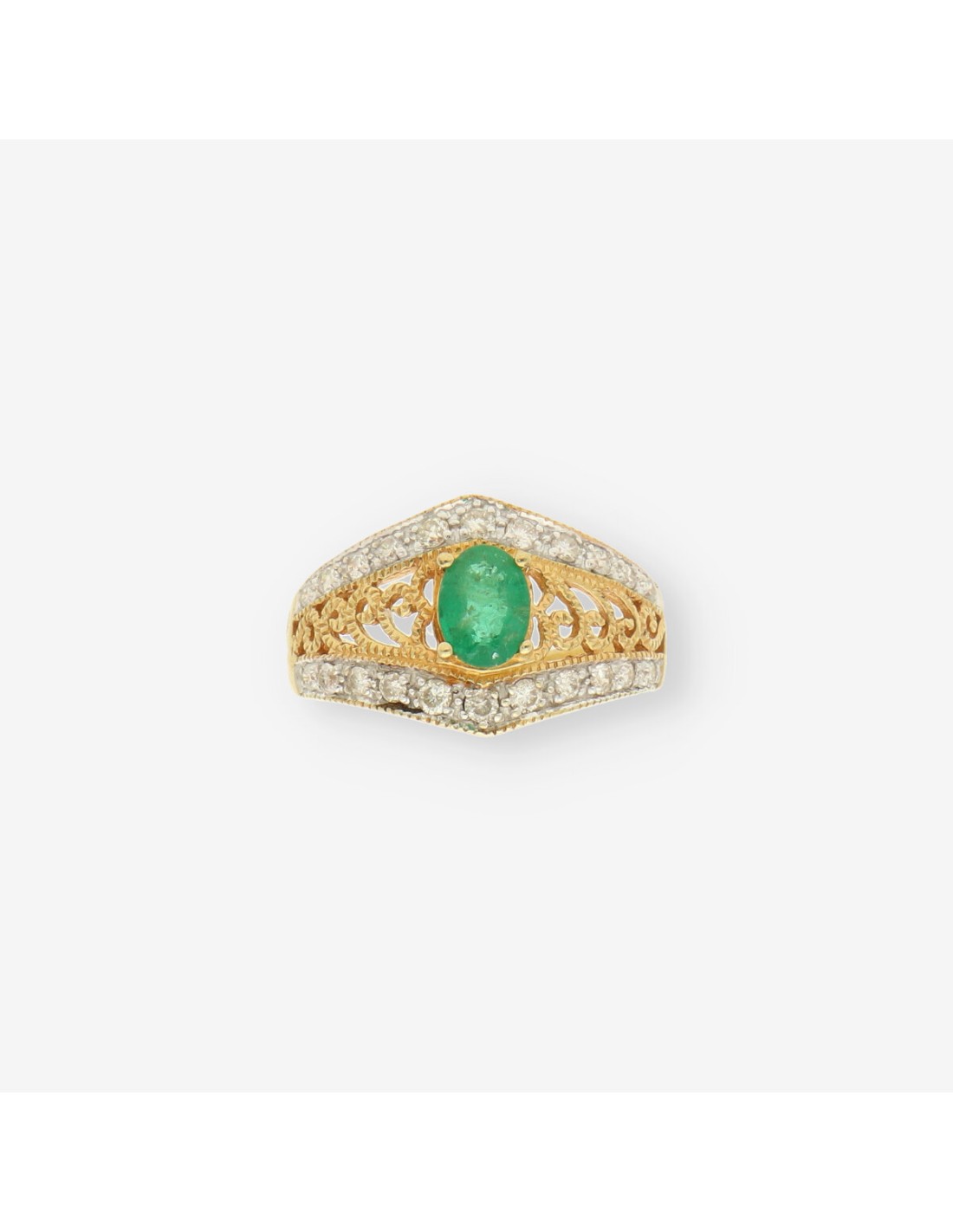 Refinado anillo de segunda mano con esmeralda central y brillantes.