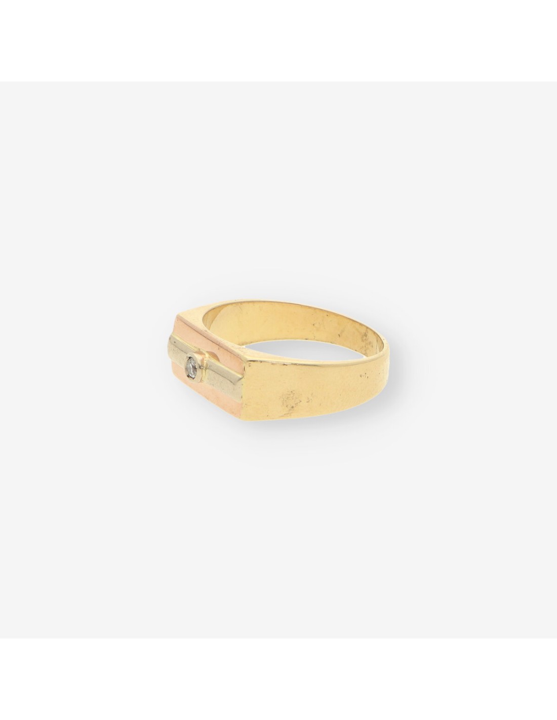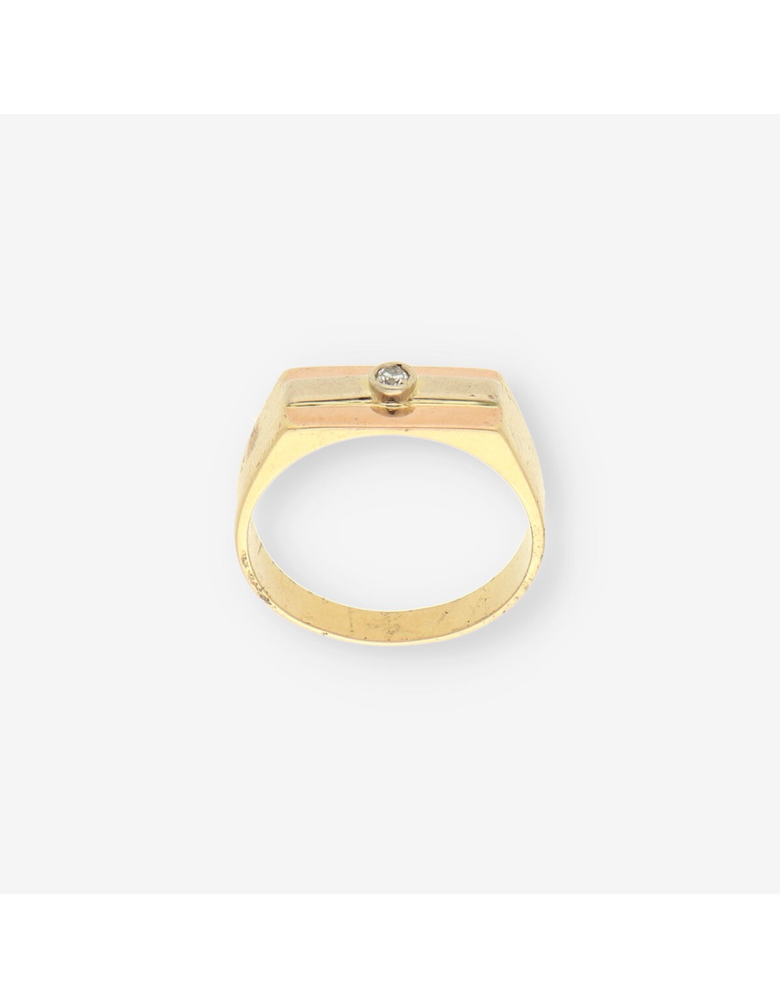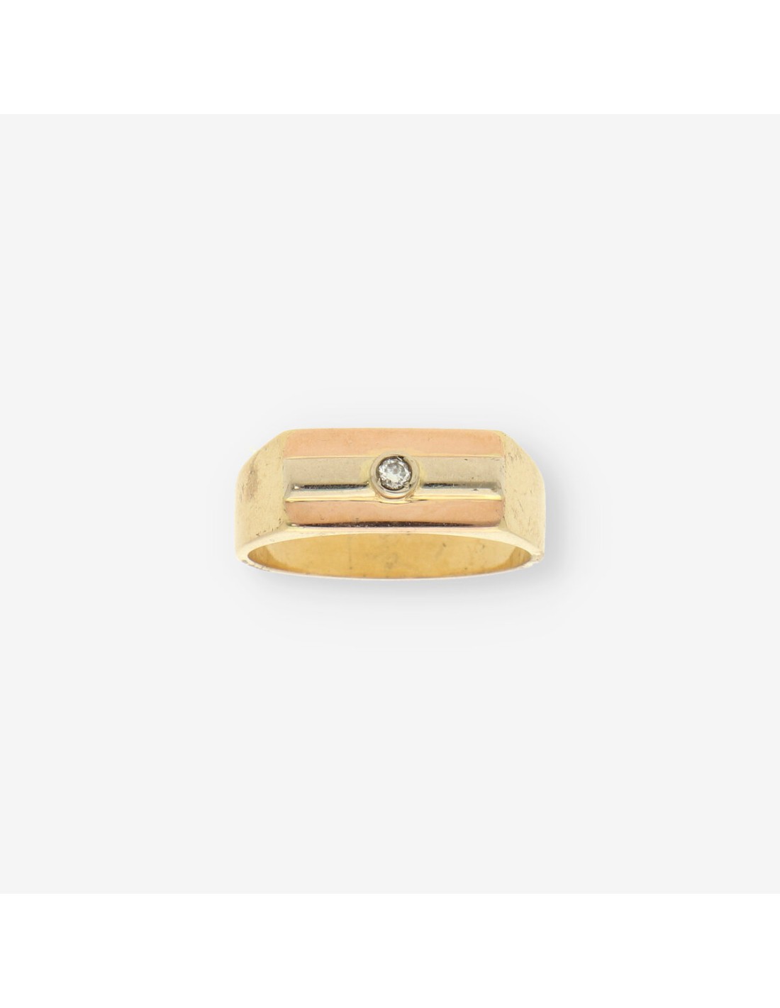 Refinado anillo de segunda mano en oro con un detalle central de brillante.