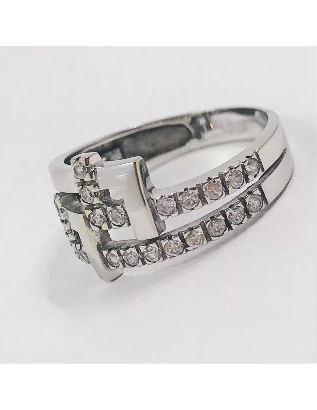 Magnifico anillo de segunda mano en oro blanco con un precioso diseño moderno que te acompañará en todo momento. Talla 13. Peso: 3gr.