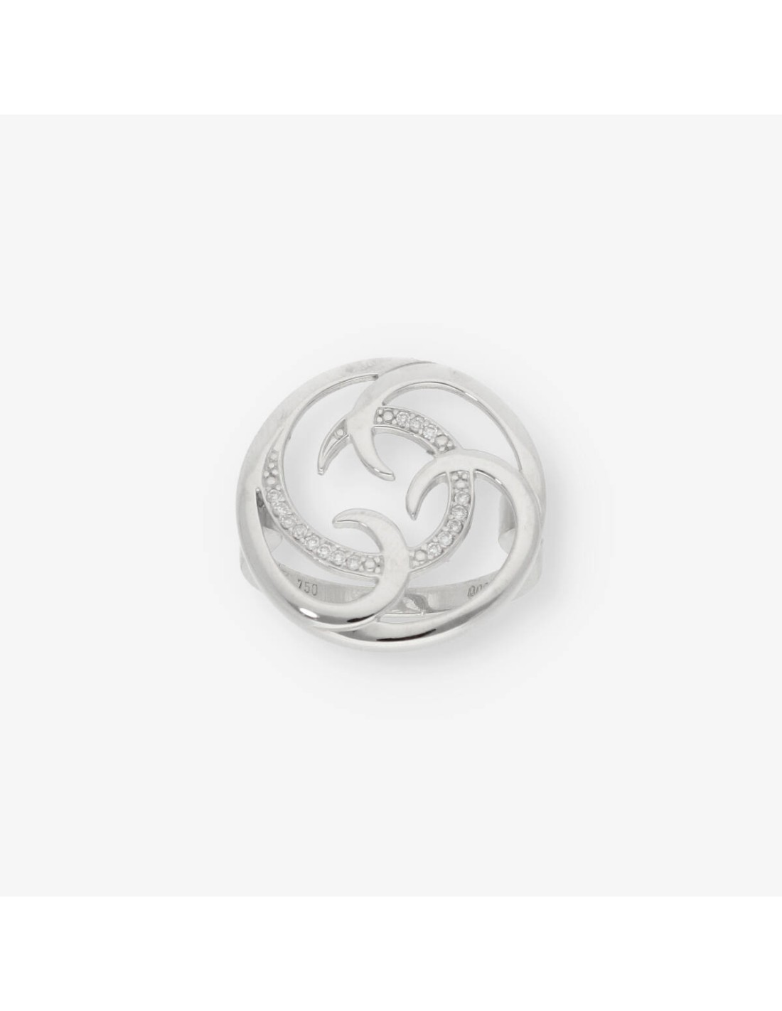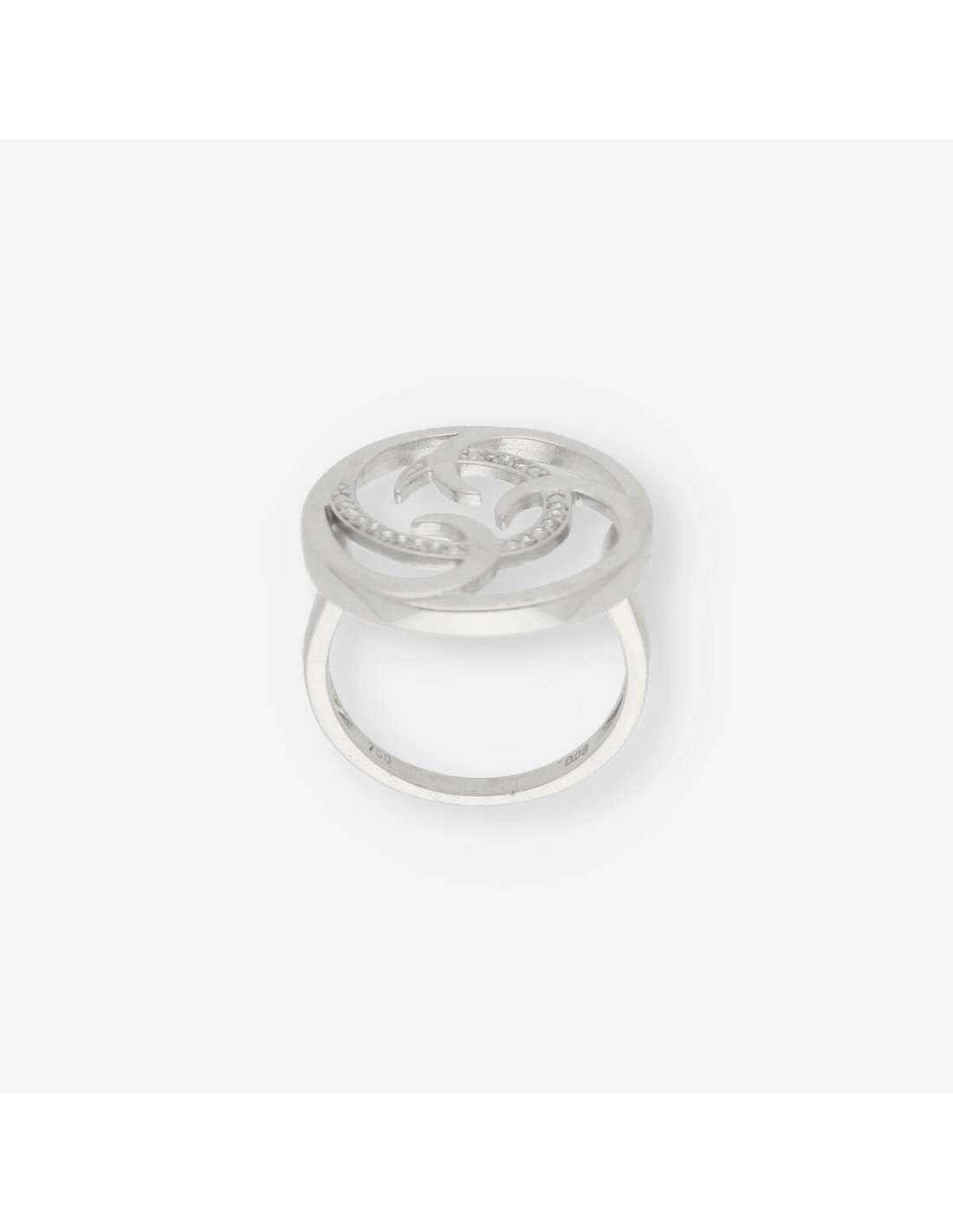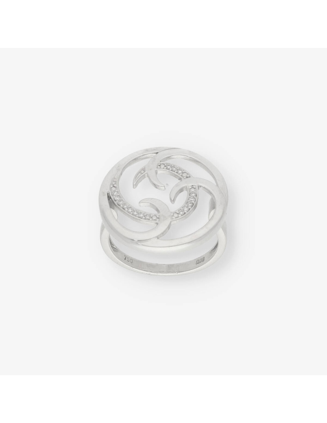 Anillo de segunda mano en oro blanco de primera ley con brillante. Una pieza ideal para los amantes de los anillos. Peso: 6.3gr. Talla: 15.5.