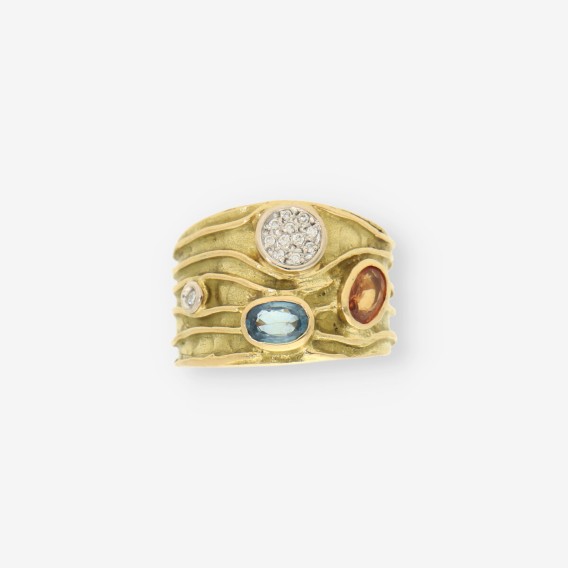 Anillo piedra azul y naranja en oro 18kt con brillantes