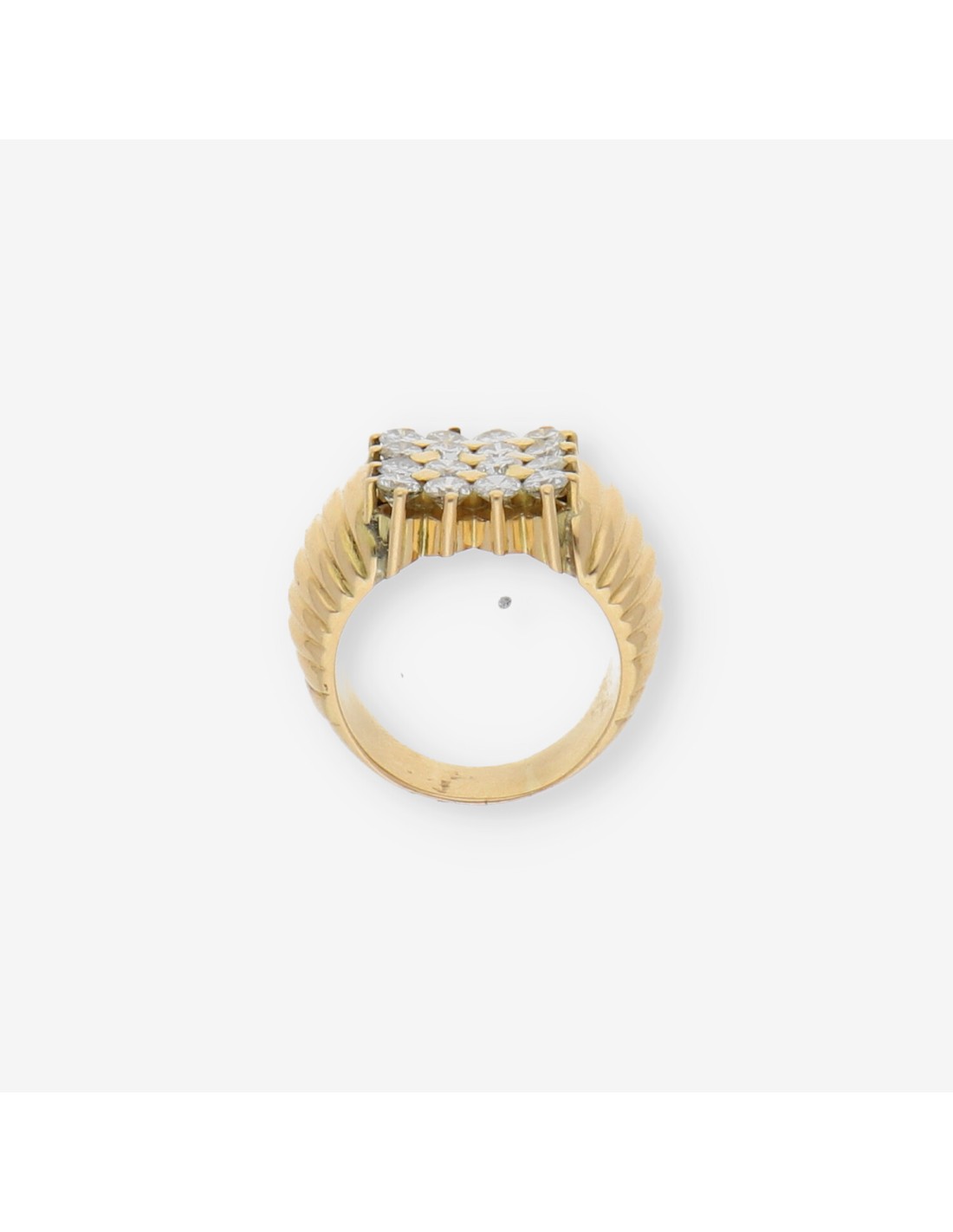 Precioso sello de segunda mano en oro amarillo de primera ley con un acabado rectangular con brillantes. Una pieza clásica, ideal para los amantes de los sellos. Talla: 14. Peso: 14.78gr.