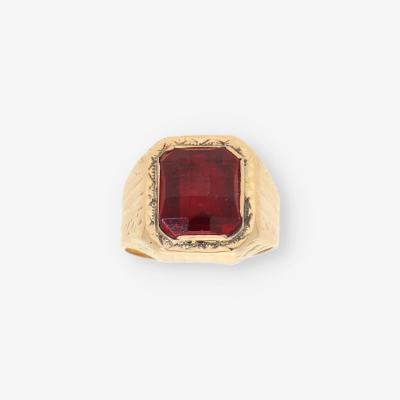 Anillo sello oro 18kt con piedra roja