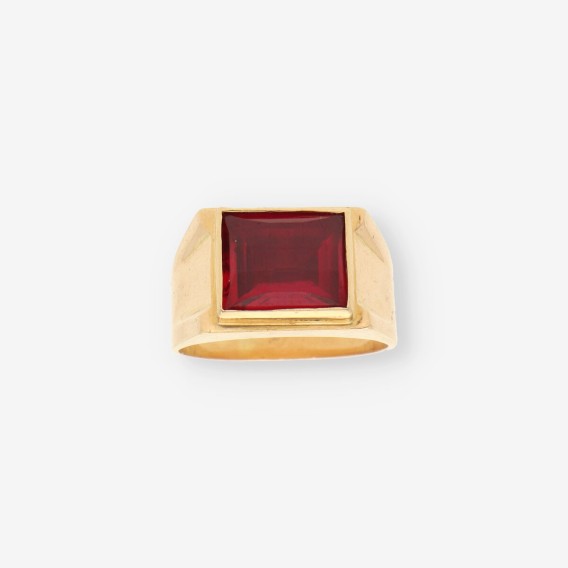 Anillo sello oro 18kt y piedra roja