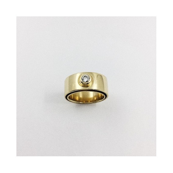 Anillo solitario de segunda mano en oro de 18 kt. y brillante engastado en chatón de 0,25 qt. aprox. Talla: 18. Peso: 18,8 g.