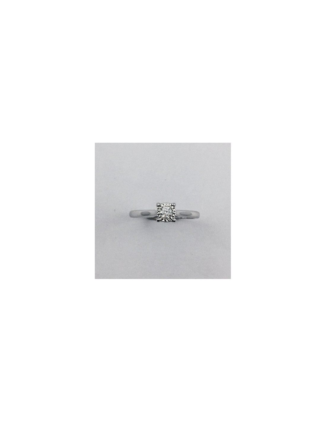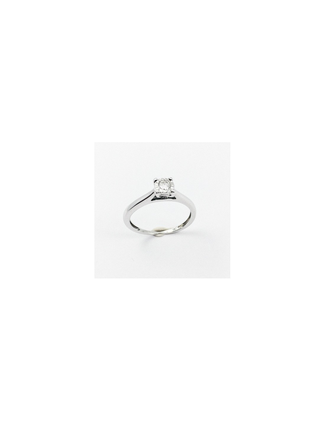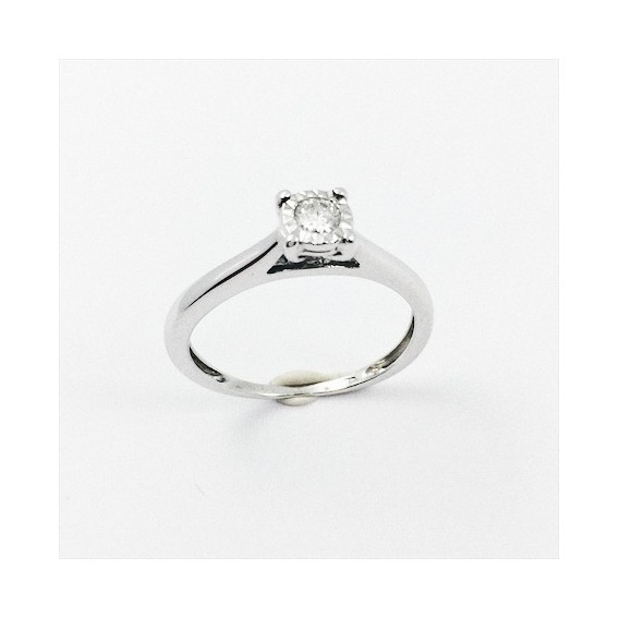 Anillo solitario de segunda mano en oro blanco de 18 kt. y brillante. Talla: 10. Peso: 2 g.