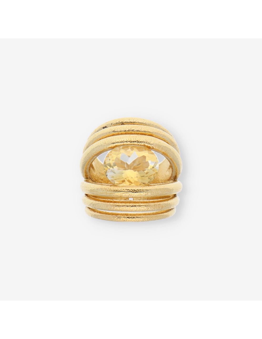 Magnifico anillo Tous de segunda mano en oro amarillo de primera ley con piedra central central. Una preciosa pieza con un gran diseño moderno.. Talla: 13. Peso: 8.1gr.