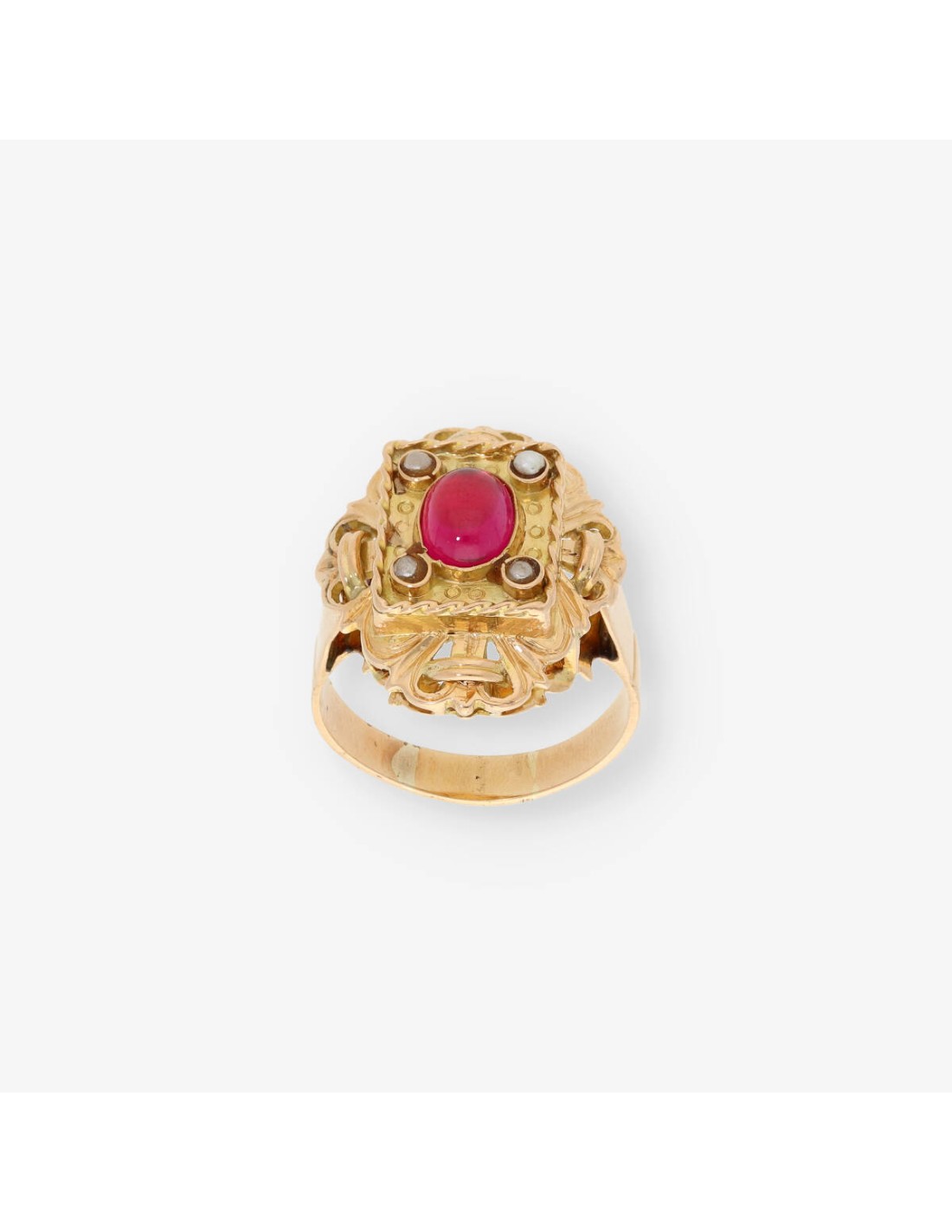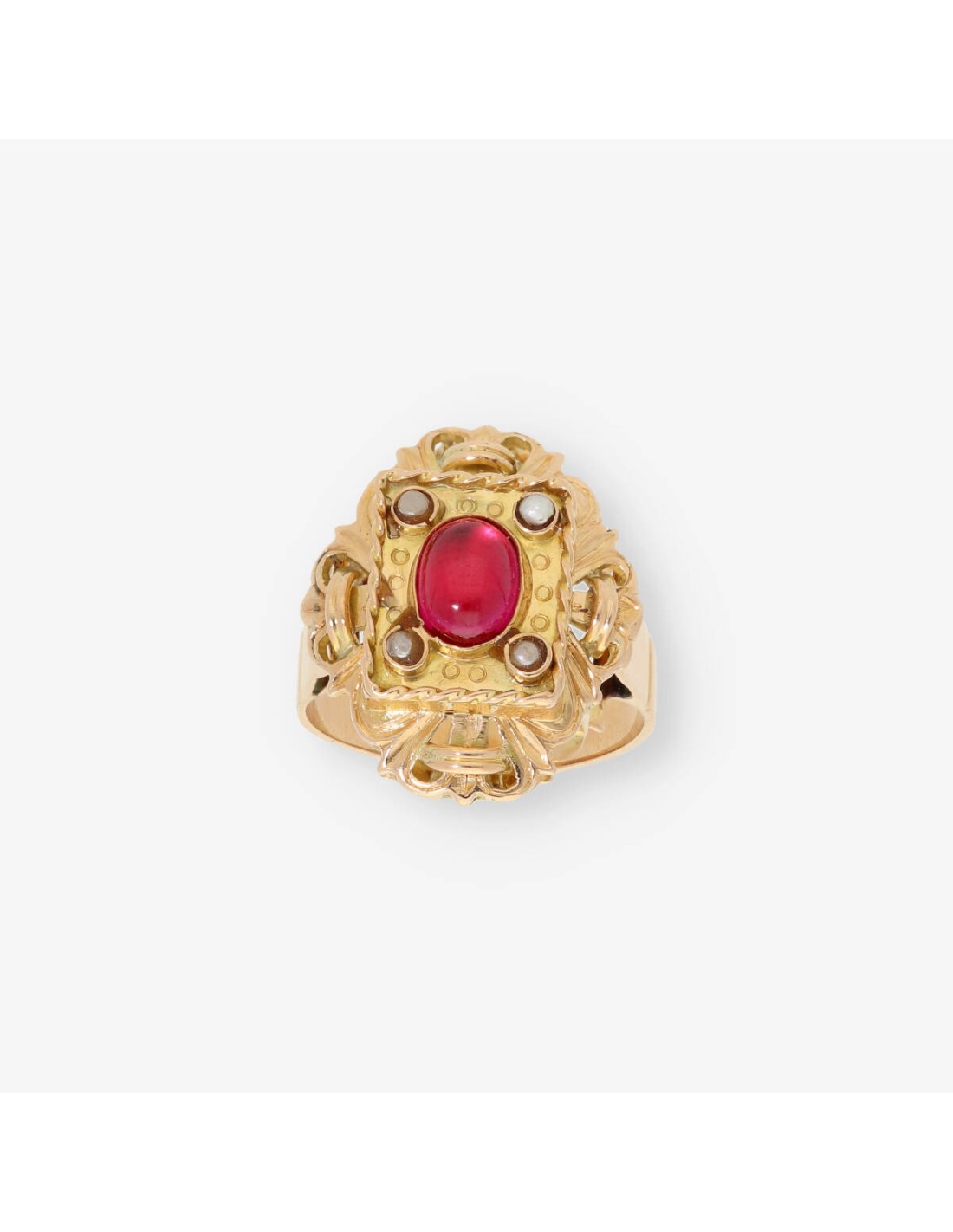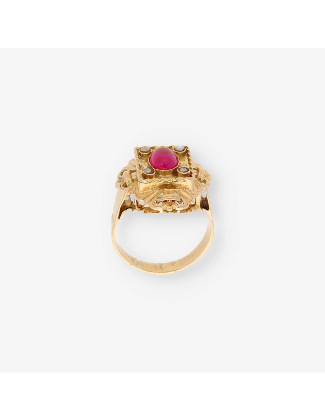 Precioso anillo vintage de segunda mano en oro amarillo de 18kt con un magnífico trabajo y acabado. Ideal para cualquier momento. Talla: 21. Peso: 8.75gr.