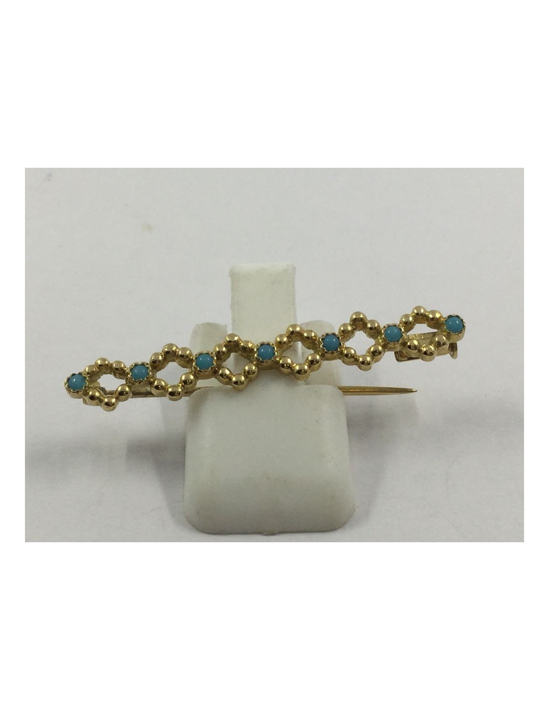 Broche aguja de oro y piedras azules