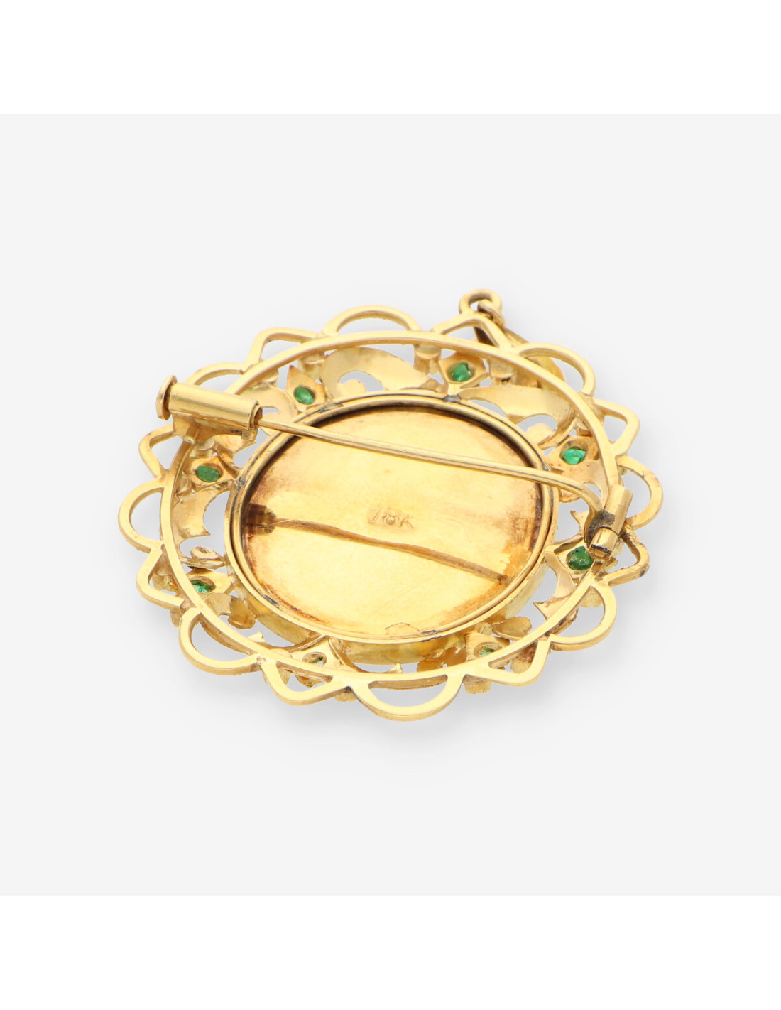 Broche-colgante medalla oro 18kt, esmalte y perlas