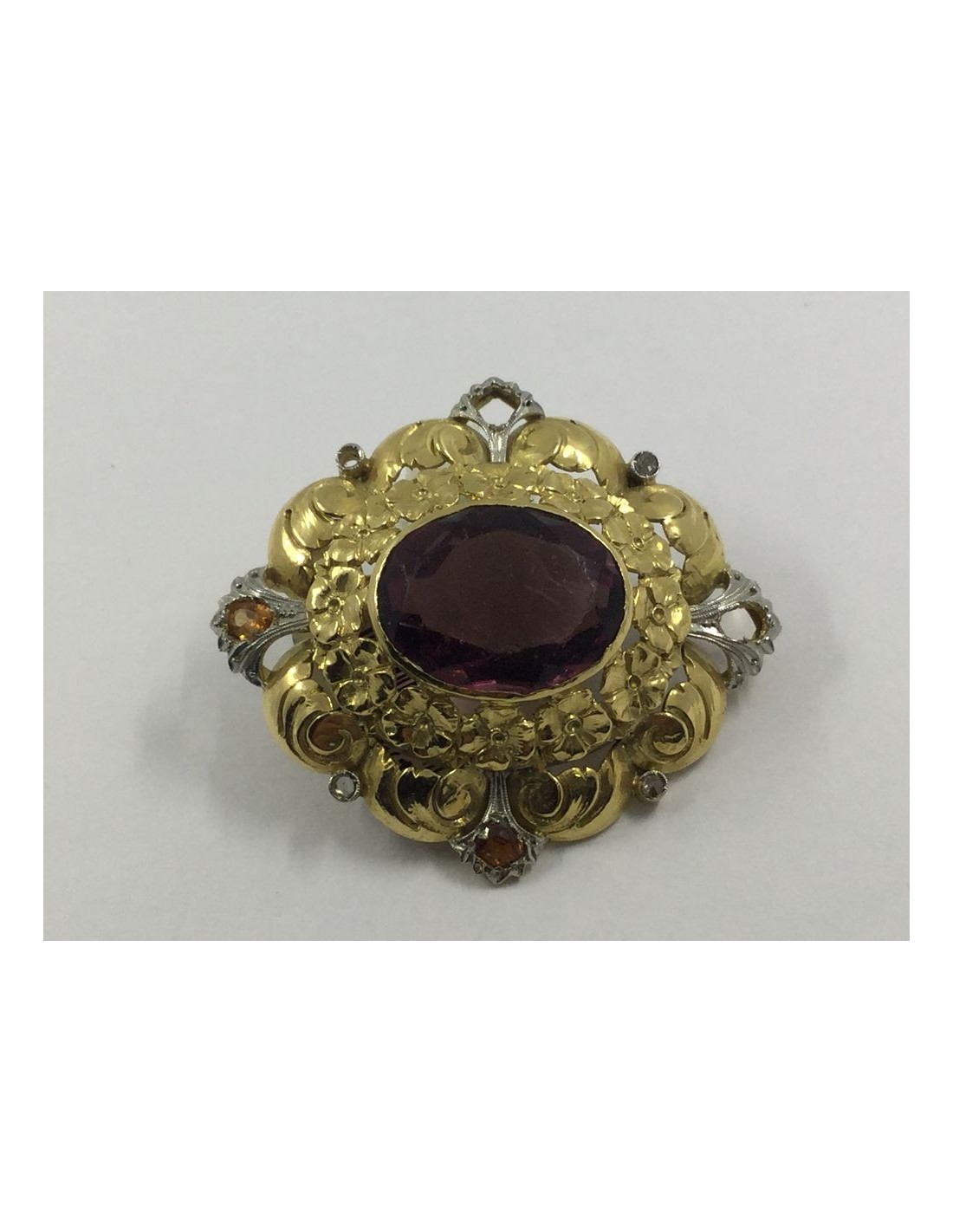 Broche de oro y piedras de color