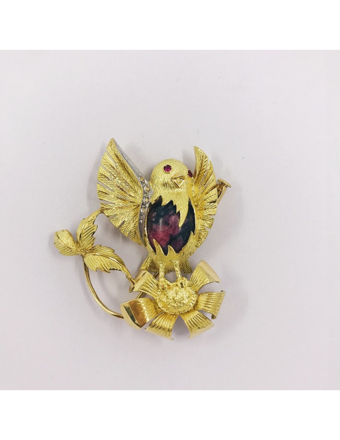 Broche en forma Canario en oro 18kt y diamantes