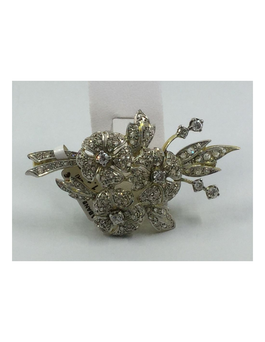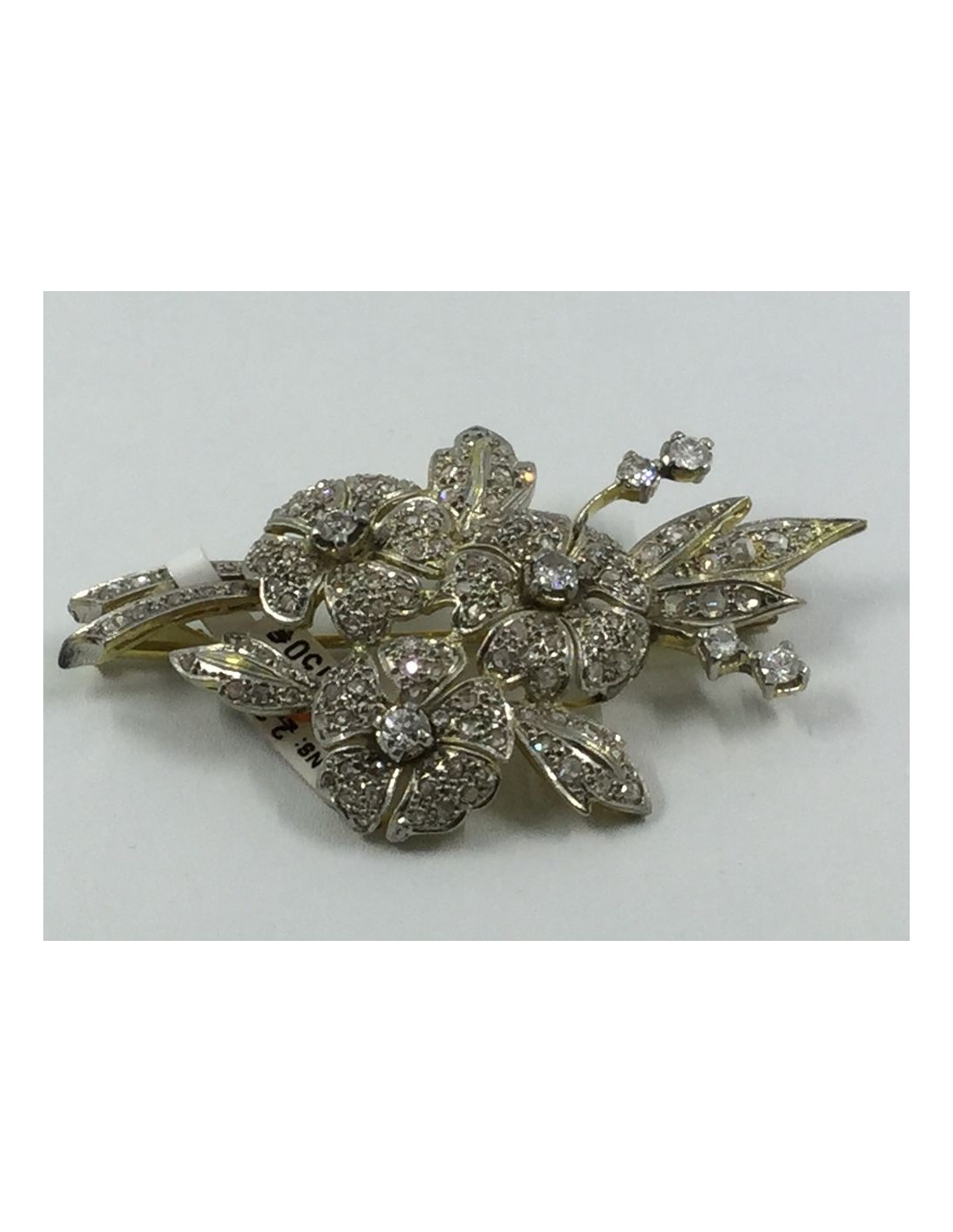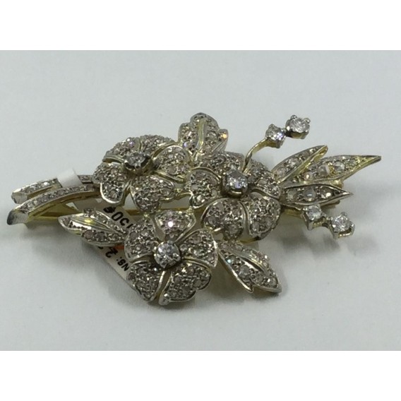 Broche de ocasión en oro blanco y amarillo de 18 kt. cuajado de brillantes. Medidas: 6,1 x 3,7 cm. Peso: 15,5 gr.
