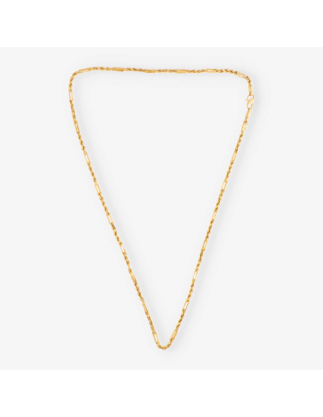 Preciosa cadena de segunda mano en oro amarillo de primera ley en 21kt. Una pieza magnífica para ser lucida en cualquier momento y lugar. Largo: 57cm. Ancho: 0.3cm. Peso: 26.56gr.