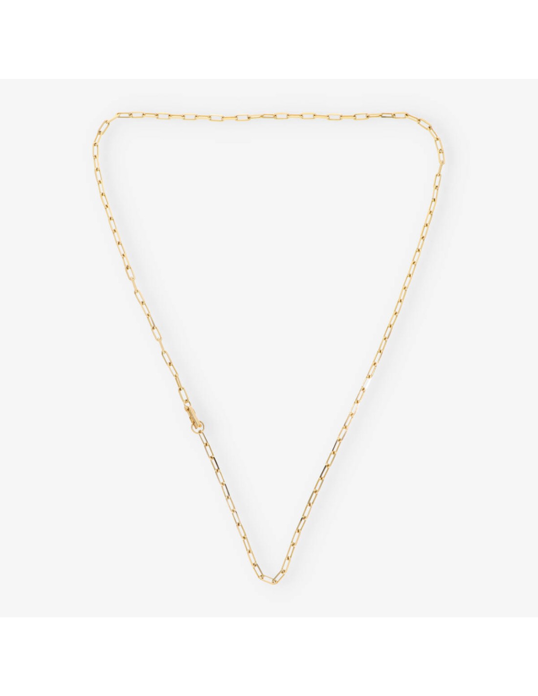 Preciosa cadena de segunda mano en oro amarillo de primera ley. Una pieza magnífica para ser lucida en cualquier momento y lugar. Largo: 61cm. Ancho: 0.3cm. Peso: 15.82gr.