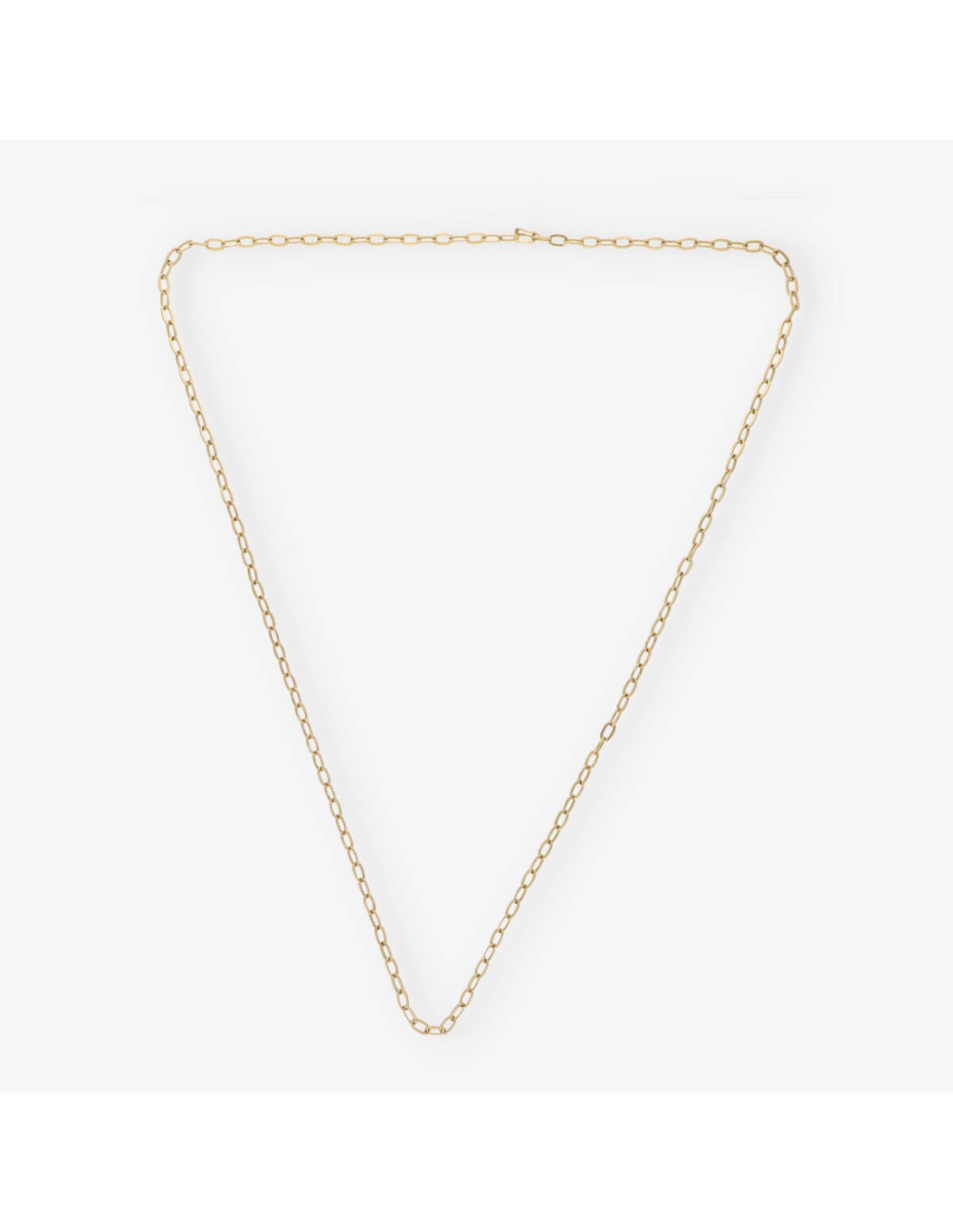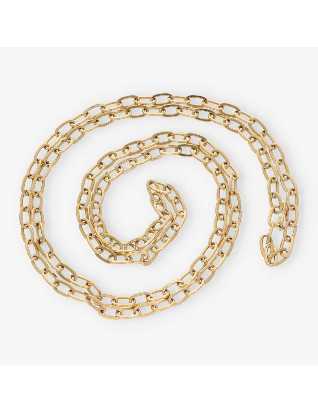 Preciosa cadena de segunda mano en oro amarillo de primera ley con cierre de mosquetón. Una pieza magnífica para ser lucida en cualquier momento y lugar. Largo: 83cm. Ancho: 0.4cm. Peso: 23.1gr.