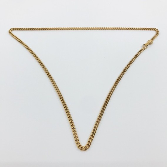 Preciosa cadena barbada de segunda mano en oro amarillo de primera ley con un diseño de clásico y elegante, una magnifica pieza para los amantes de las cadenas. Longitud: 50,5cm. Peso: 23,6gr.