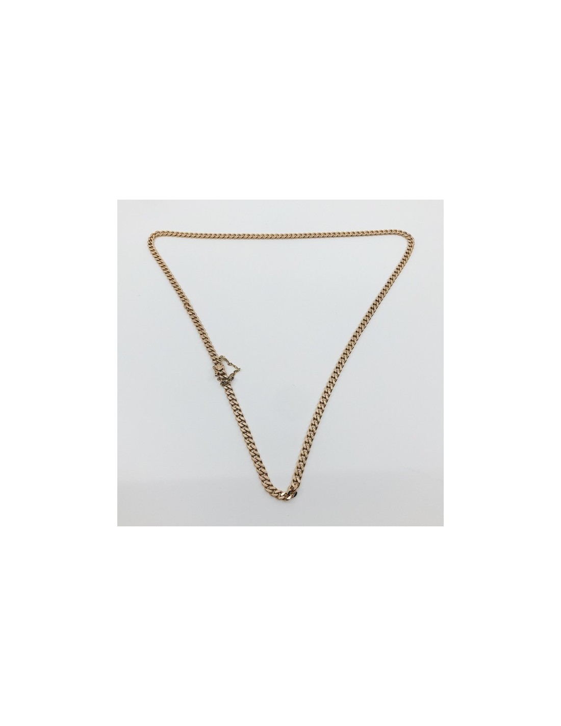 Preciosa cadena barbada de segunda mano en oro amarillo de primera ley con un diseñoclásico y elegante, una magnifica pieza para los amantes de las cadenas. Longitud: 68.5cm. Grosor: 0.5cm. Peso: 58.7gr.