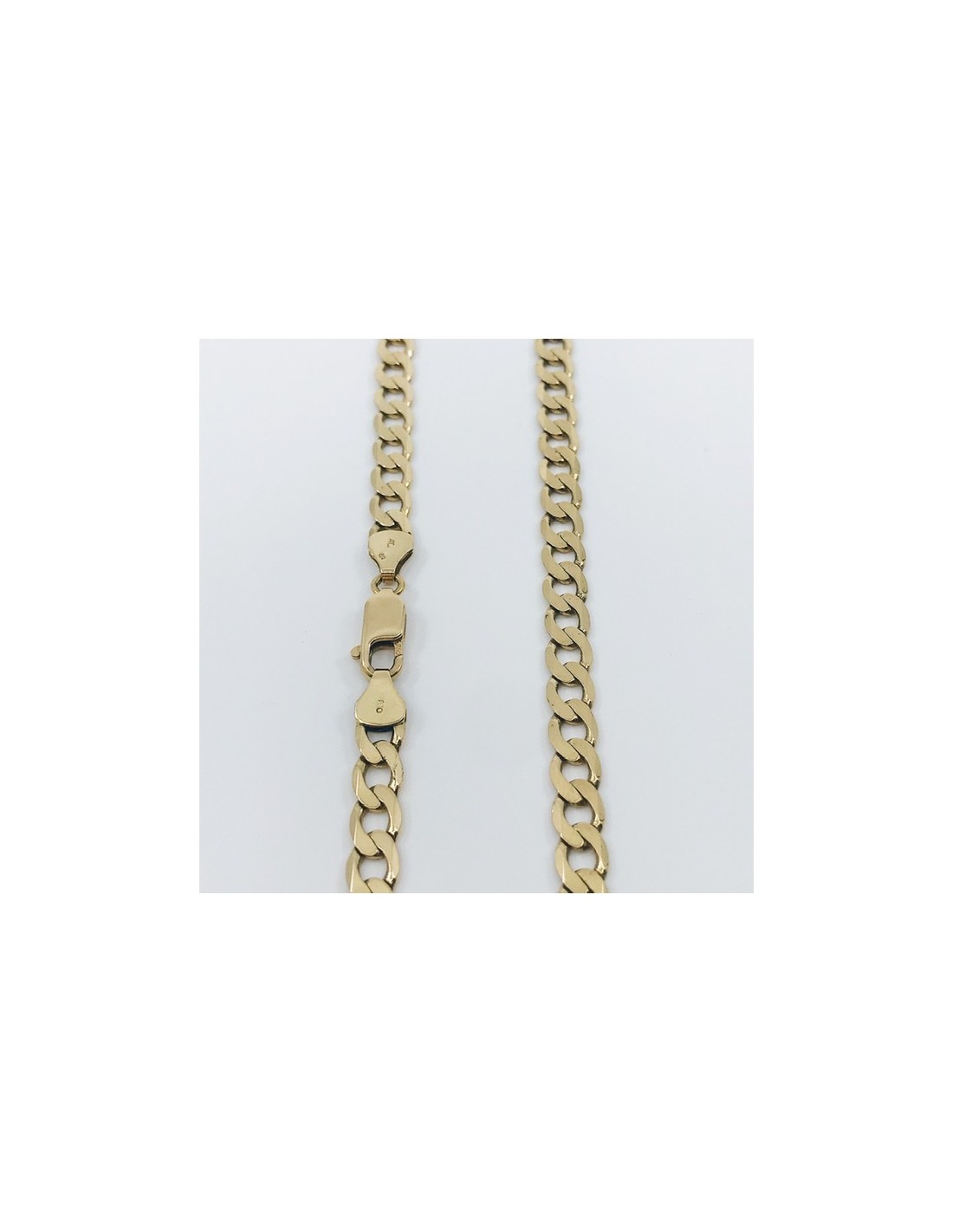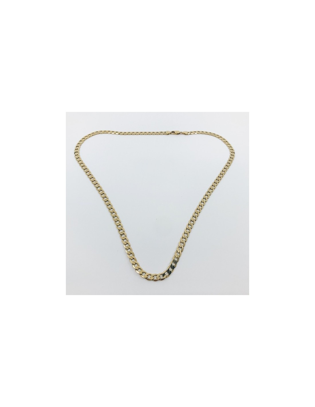 Preciosa cadena barbada de segunda mano en oro amarillo de primera ley con un diseño de clásico y elegante, una magnifica pieza para los amantes de las cadenas. Longitud: 61,5cm. Peso: 37,7gr.