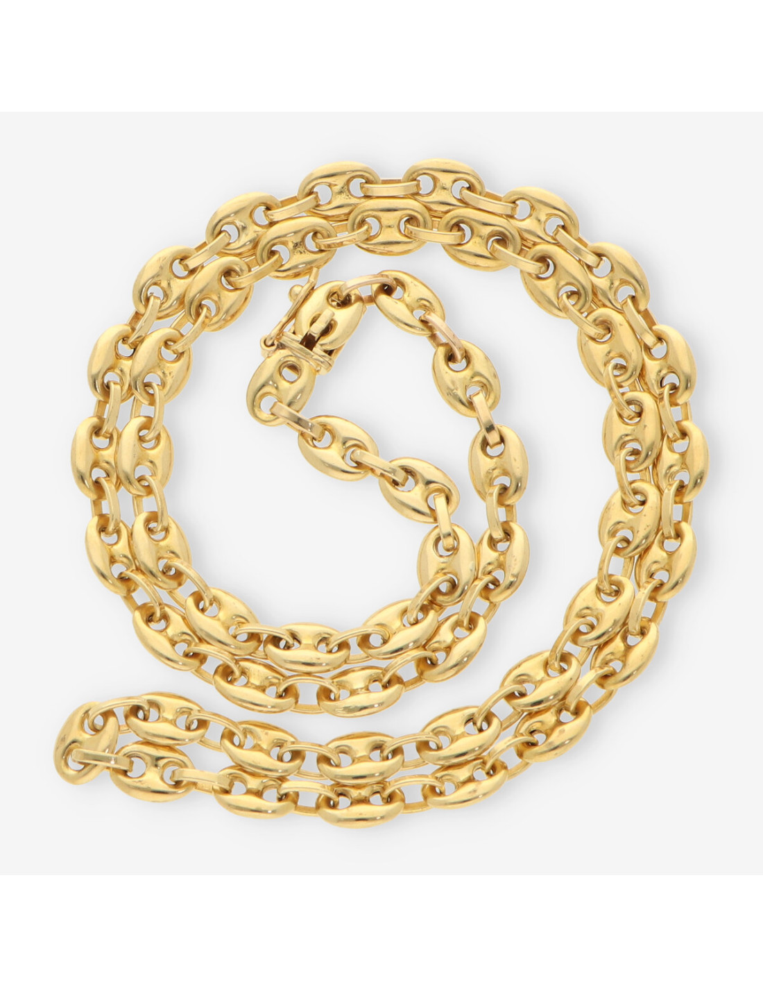 Esta elegante cadena de segunda mano, elaborada en oro de primera ley, presenta un diseño calabrote que combina lo clásico con un toque sofisticado. Con un peso de 27 gramos, un ancho de 0.5 cm y una longitud de 51.5 cm, es una pieza que brinda un equilibrio perfecto entre ligereza y presencia. El diseño calabrote es atemporal, asegurando que esta cadena se mantenga como una joya versátil y apreciada en cualquier colección. Ideal para complementar tanto atuendos casuales como formales, su brillo y calidad son evidentes, lo que la convierte en una opción perfecta para el día a día o para ocasiones especiales.