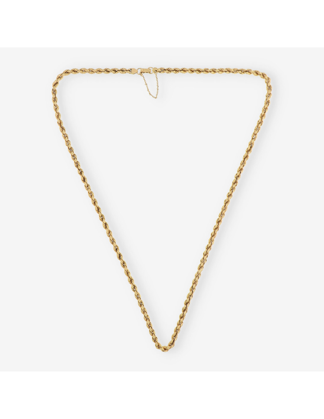 Esta elegante cadena de segunda mano, elaborada en oro de primera ley, presenta un diseño cordón que destaca por su robustez y estilo clásico. Con un peso de 22.3 gramos, un ancho de 0.4 cm y una longitud de 64 cm, esta pieza ofrece una presencia notable y sofisticada. El diseño trenzado del cordón añade un toque atemporal, ideal para complementar cualquier atuendo, ya sea casual o formal. Su acabado en oro brillante asegura un resplandor excepcional, convirtiéndola en una joya esencial para quienes aprecian la calidad y el diseño refinado en su colección personal.