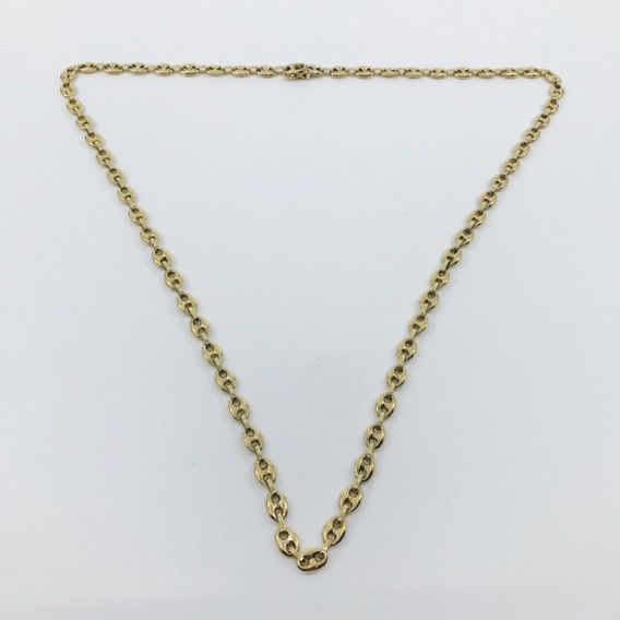 Preciosa cadena de calabrotes de segunda mano en oro amarillo de primera ley. Una magnifica pieza, ideal como regalo. Longitud: 63,5cm. Peso: 30,4gr.