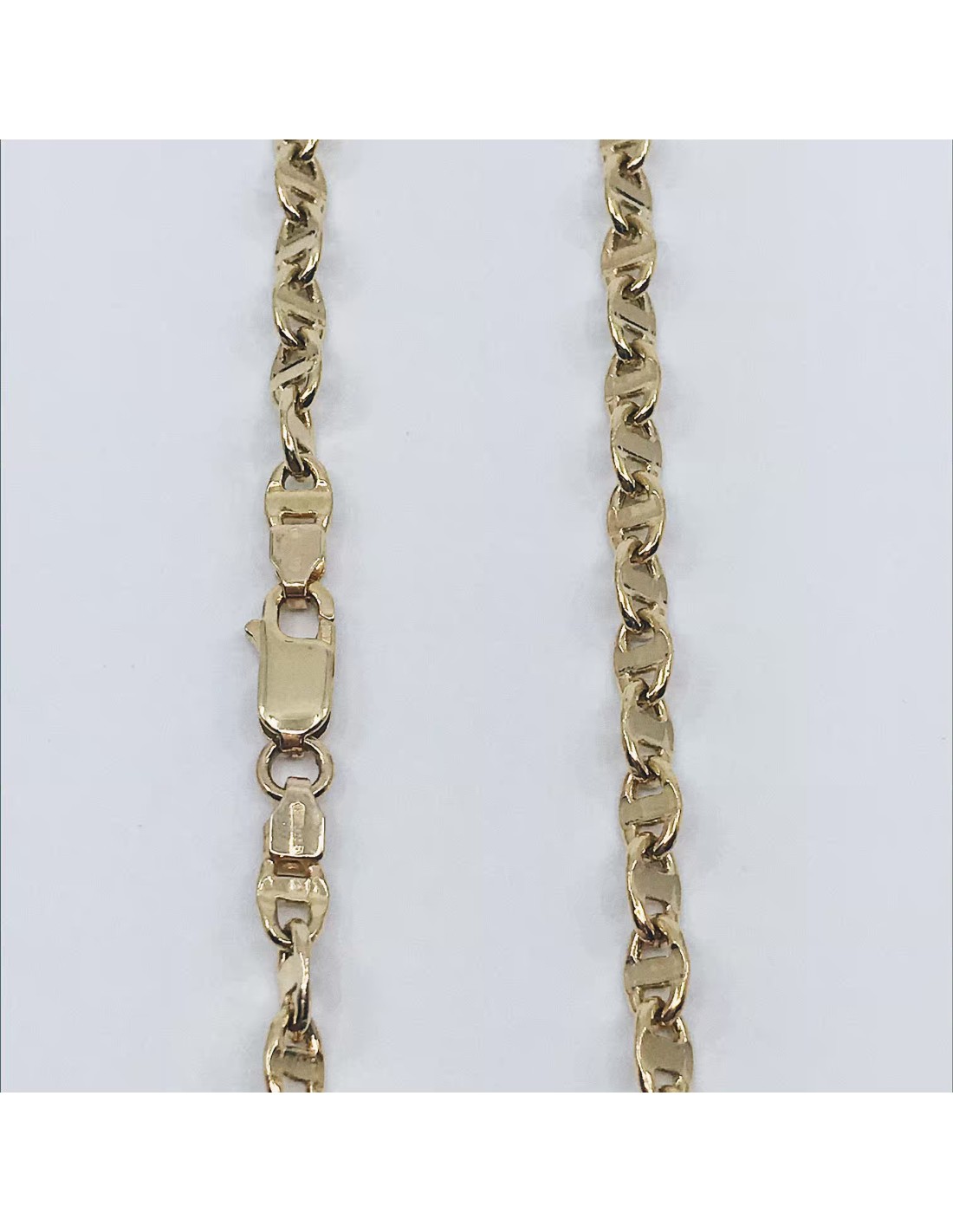 Preciosa cadena forzada con barras de segunda mano en oro amarillo. Una pieza magnífica para ser lucida en cualquier momento. Longitud: 60cm. Peso: 13,8gr.