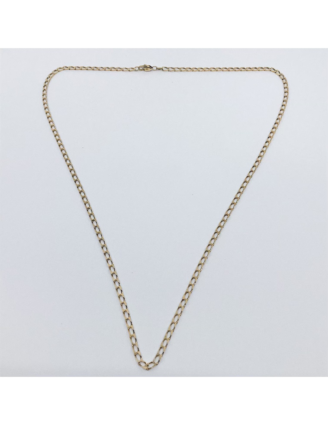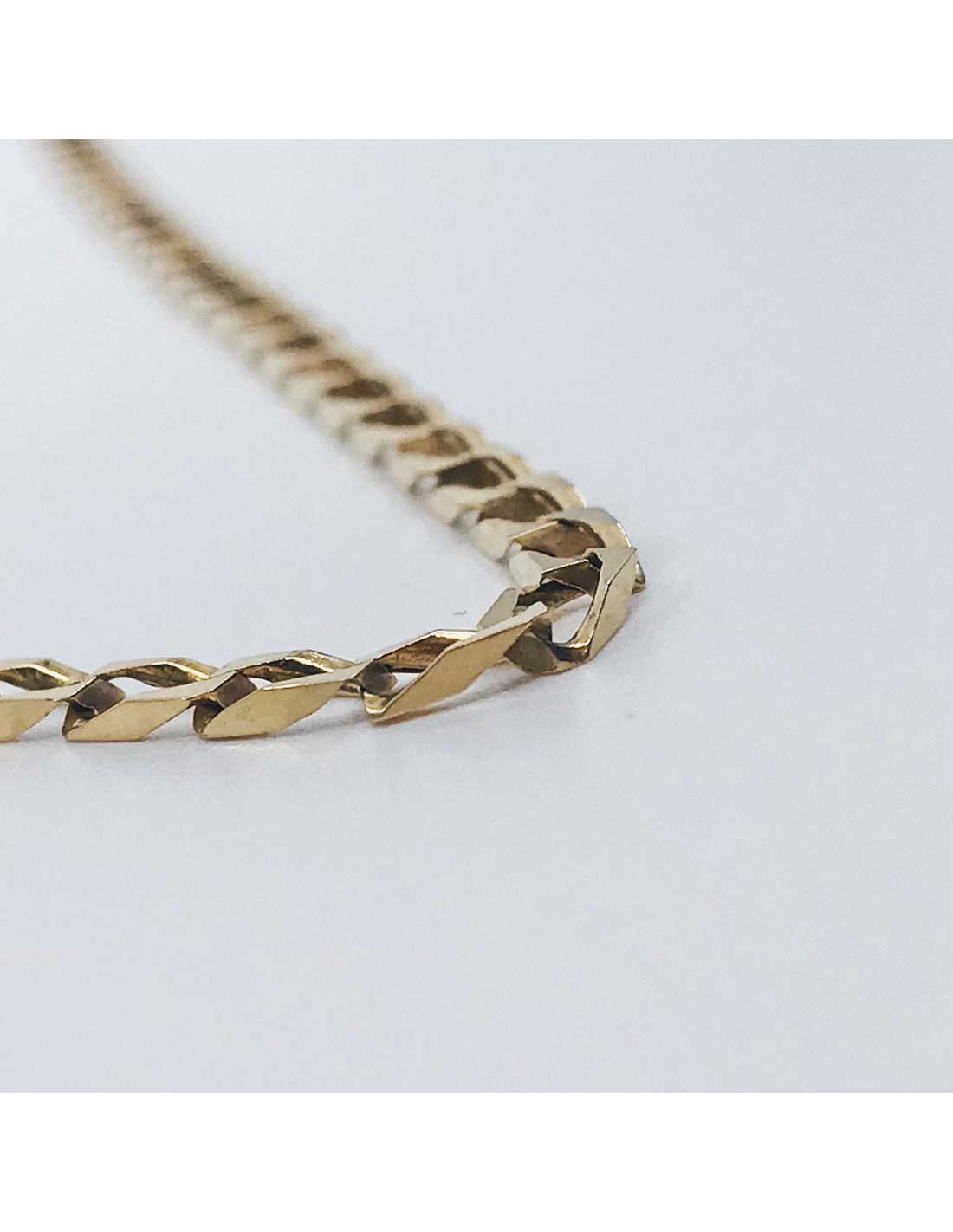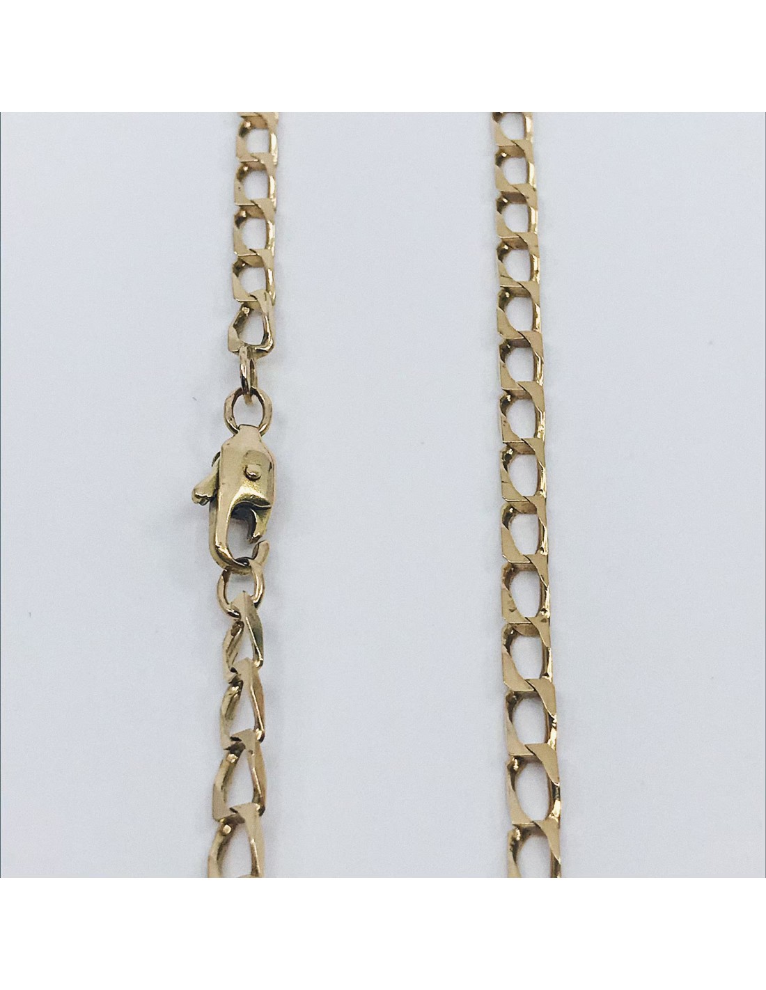 Preciosa cadena de segunda mano en oro amarillo de primera ley con eslabones cuadradas. Una combinación perfecta entre elegancia y discreción. Longitud: 66cm. Peso: 14gr.