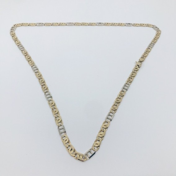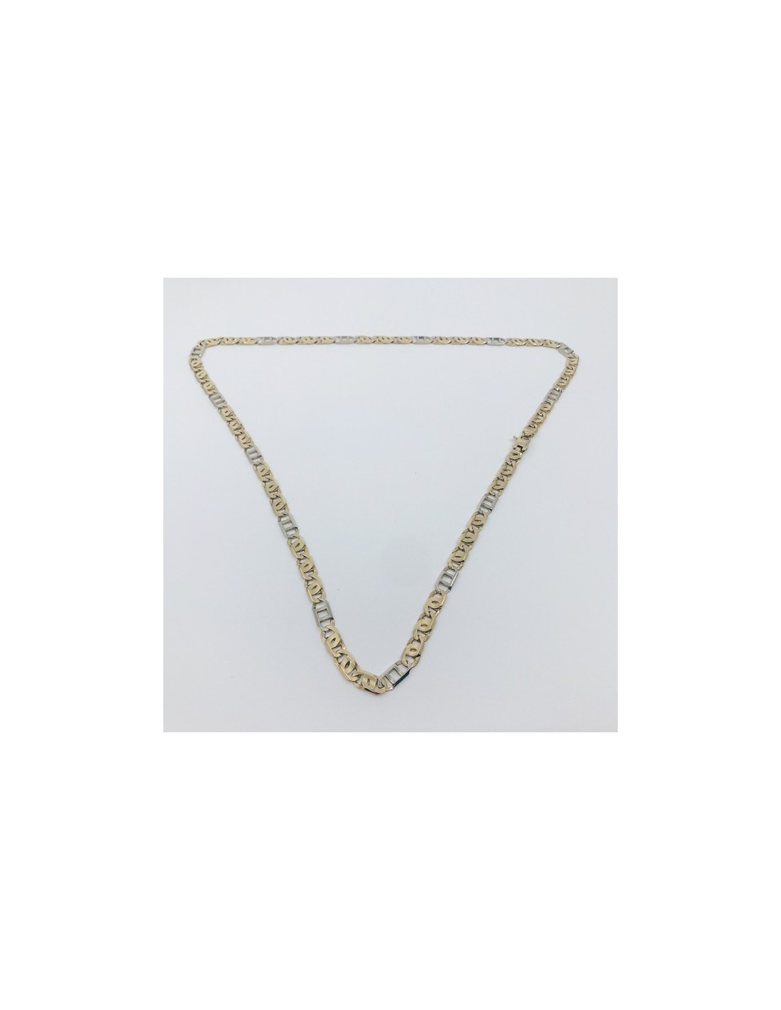 Preciosa cadena de segunda mano en oro amarillo de primera ley con cierre de mosquetón. Una pieza magnífica para ser lucida en cualquier momento y lugar. Longitud: 63cm. Peso: 45,3gr.