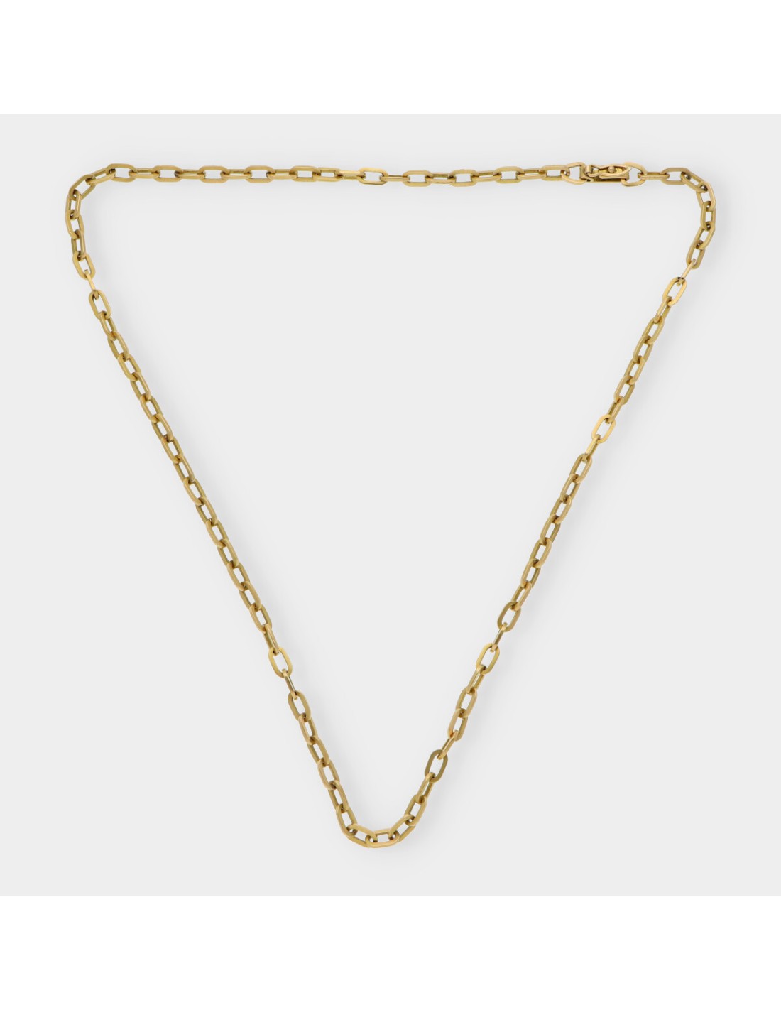 Magnífica cadena forzada de segunda mano en oro amarillo de primera ley con cierre de mosquetón y un precioso diseño de eslabones, una pieza ideal para los amantes de las cadenas. Longitud: 54.5cm. Peso: 27.4gr.