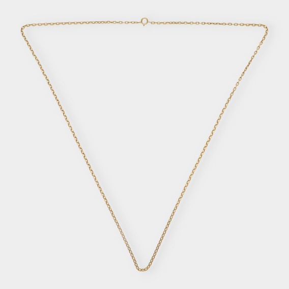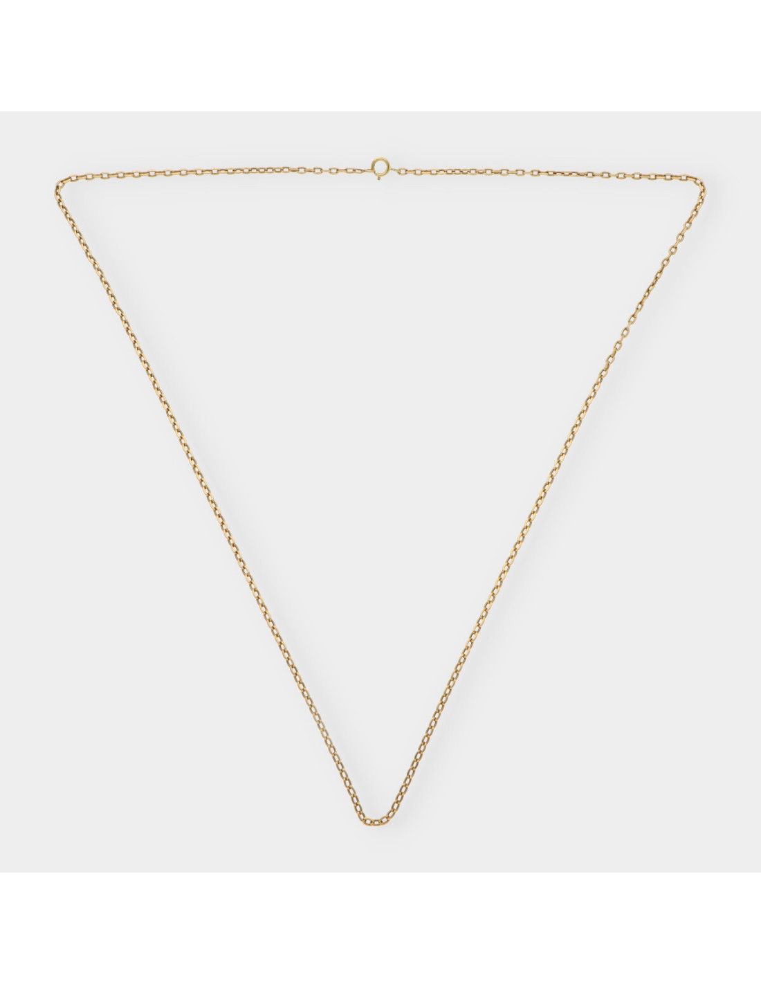 Magnífica cadena forzada de segunda mano en oro amarillo de primera ley con cierre de mosquetón y un precioso diseño de eslabones, una pieza ideal para los amantes de las cadenas. Longitud: 57cm. Peso: 7.6gr.