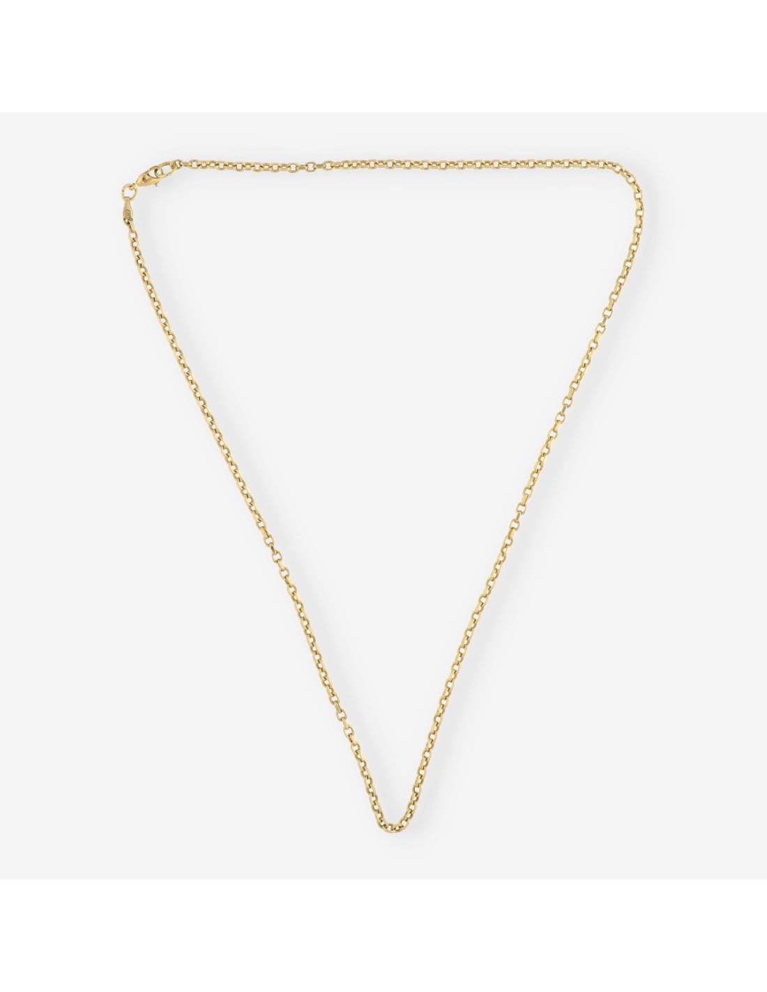 Cadena en oro de 18 kt, con un diseño clásico y elegante. Mide 53 cm de largo, 0,2 cm de ancho y tiene un peso de 13 g. Una pieza versátil, perfecta para llevar en cualquier ocasión.