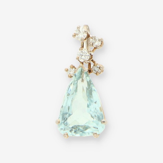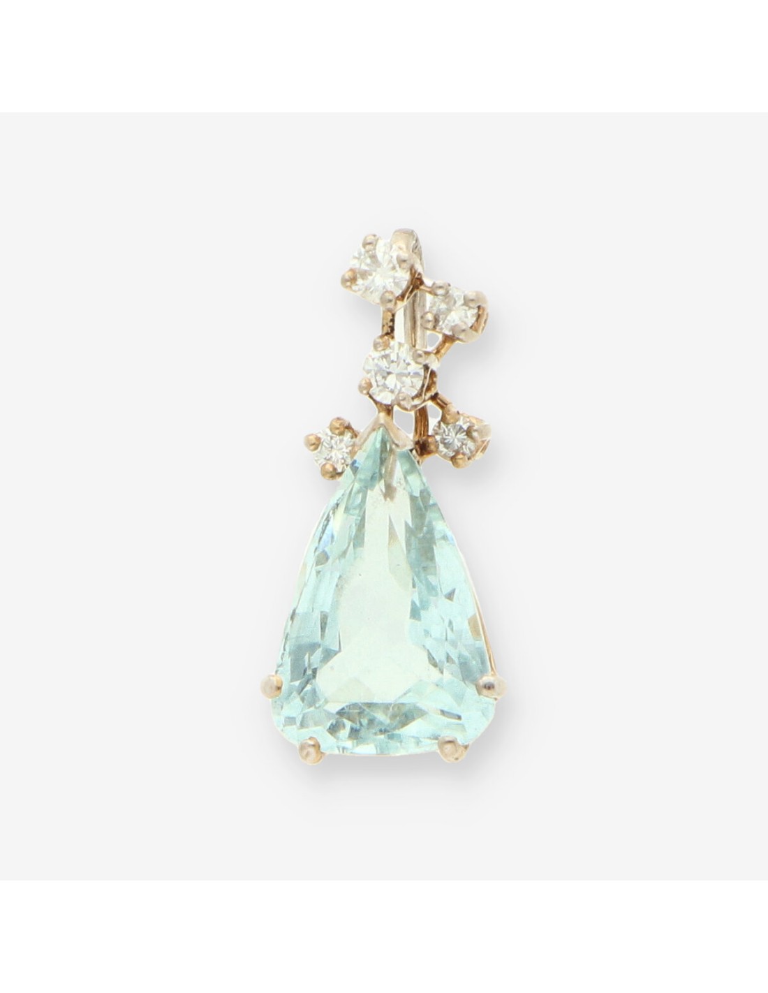 Radiante colgante con aguamarina en oro amarillo de primera ley y brillantes, una joya delicada y sofisticada que aporta un toque de color y luminosidad a cualquier look. Perfecta para lucir a diario o en una ocasión especial. Peso 2,4 g. Alto 2,1 cm, ancho 0,9 cm.