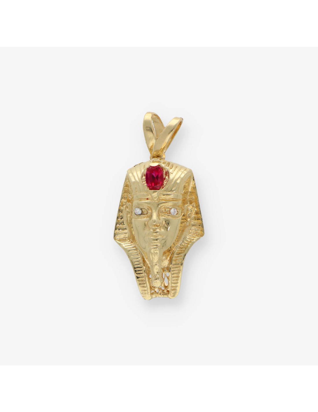 Precioso colgante faraón en oro amarillo de primera ley con piedra semipreciosa central. Una pieza ideal para cualquier momento o de colección. Atlo: 5cm. Ancho: 2.5cm. Peso: 15.46gr.