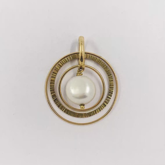 Colgante triple aro en oro 18kt con perla