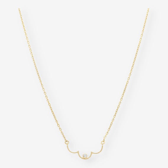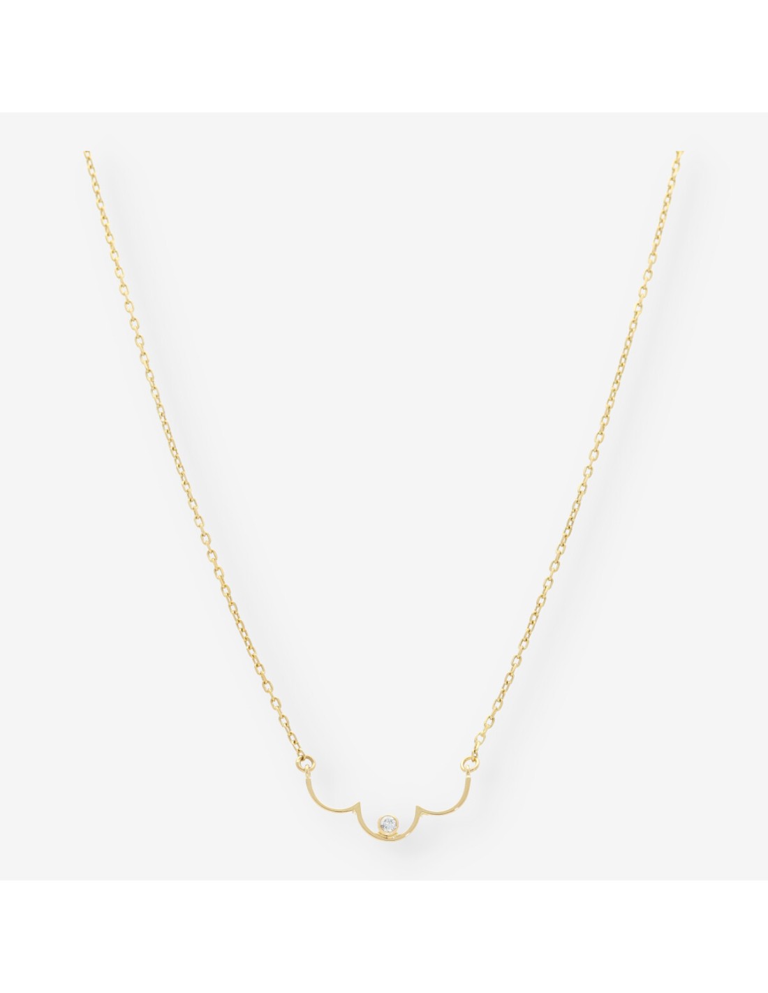 Collar de segunda mano en oro amarillo de primera ley con un magnífico diamante central en talla brillante. Longitud: 40.5cm. Peso: 2.8gr.