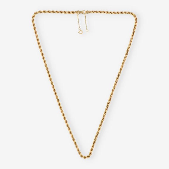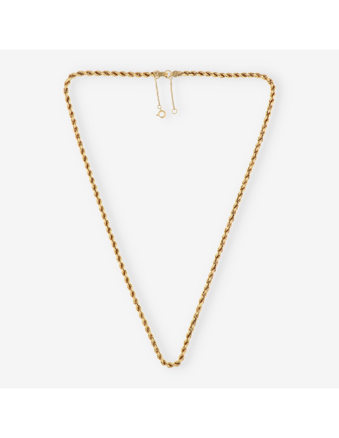 Precioso cordón de oro 18 kt con acabado trenzado clásico. Mide 56.5 cm de longitud por 0,3 cm de grosor y pesa 17 gr, una joya con carácter atemporal que realza cualquier estilo.
