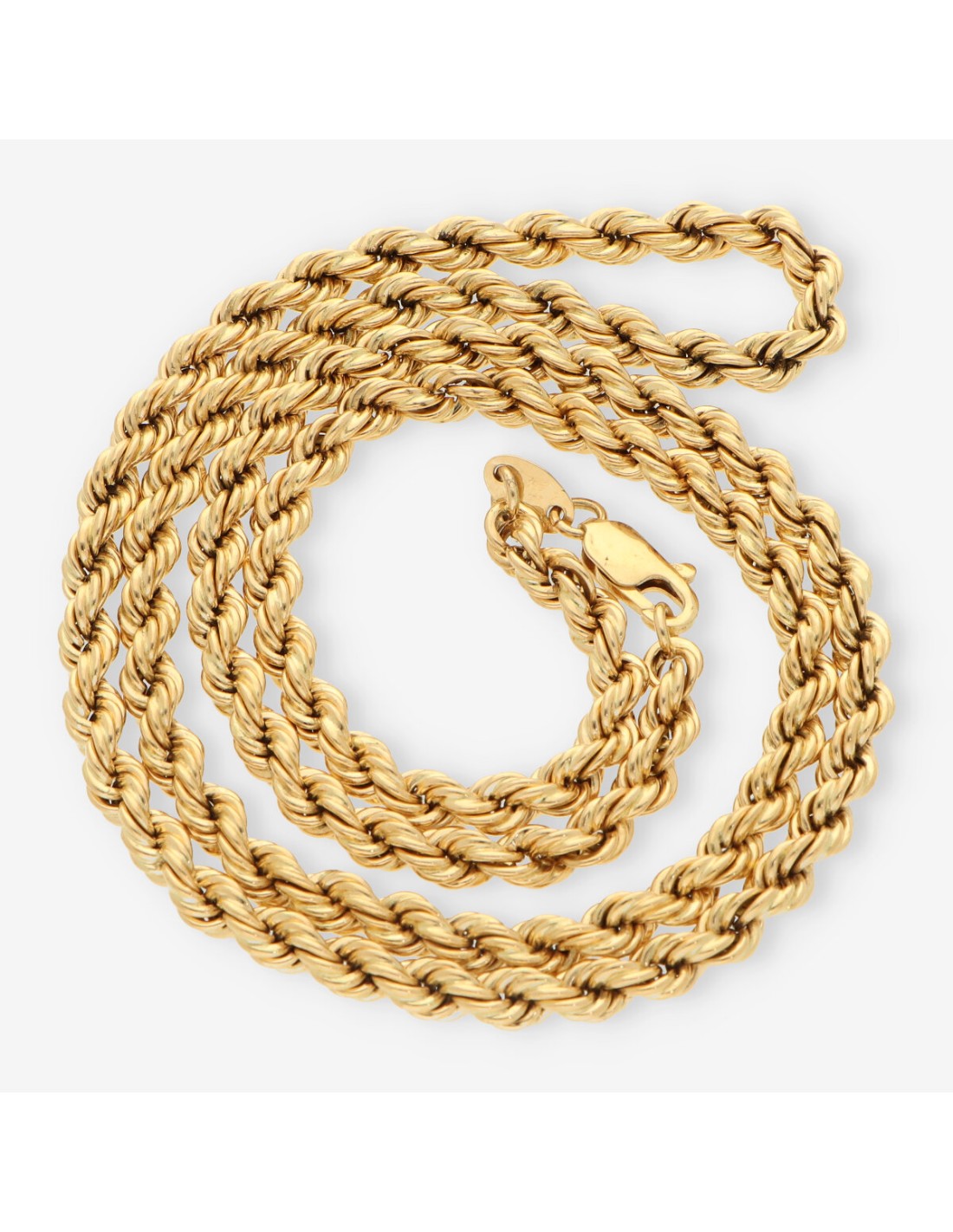 Cadena cordón en oro de 18 kt, con un elegante diseño trenzado. Sus 61 cm de largo y 0,4 cm de ancho, junto a un peso de 20.7 g, la convierten en una pieza versátil y sofisticada para cualquier ocasión.