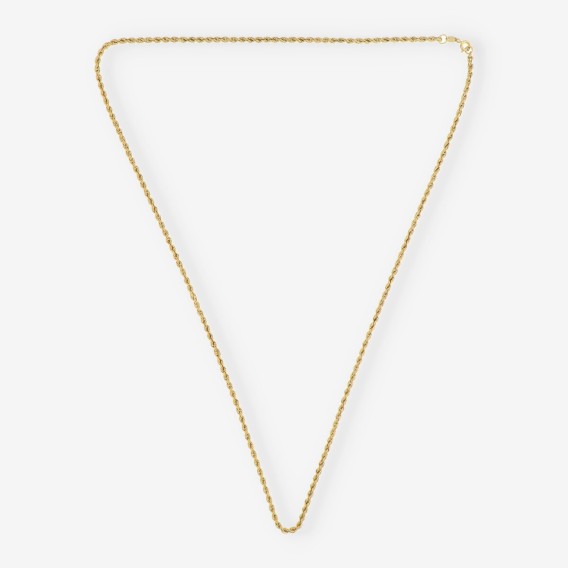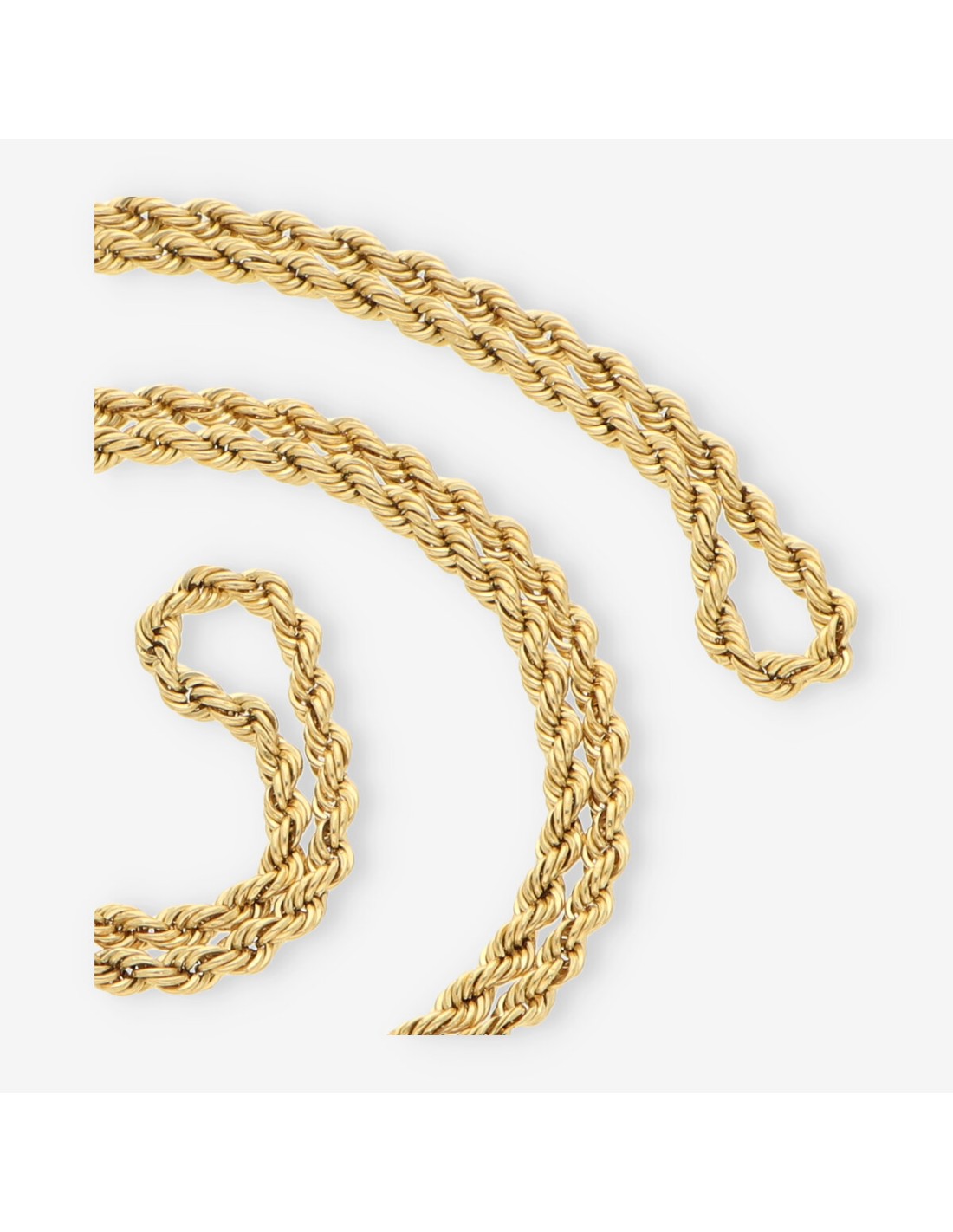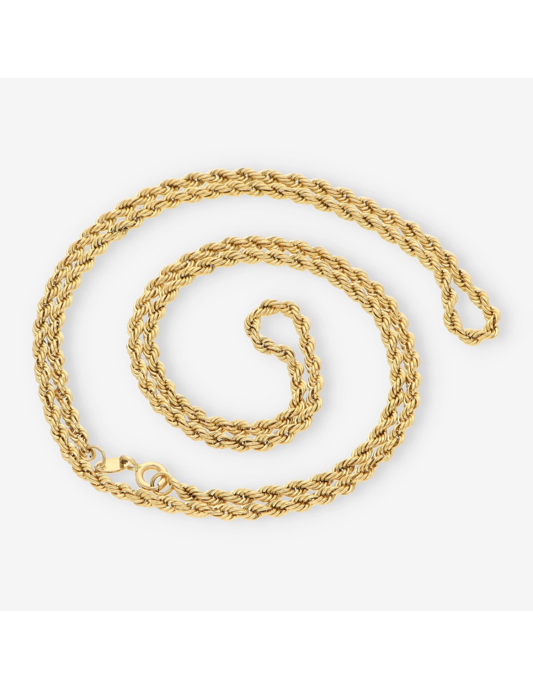 Preciosa cadena al estilo cordón en oro amarillo de primera. Una magnifica pieza ideal para los amantes de los cordones. Longitud: 63cm. Grosor: 0.2cm. Peso: 4.8gr.