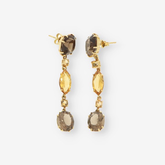 endientes largos de oro 18kt con piedras marrones y cierre a presión