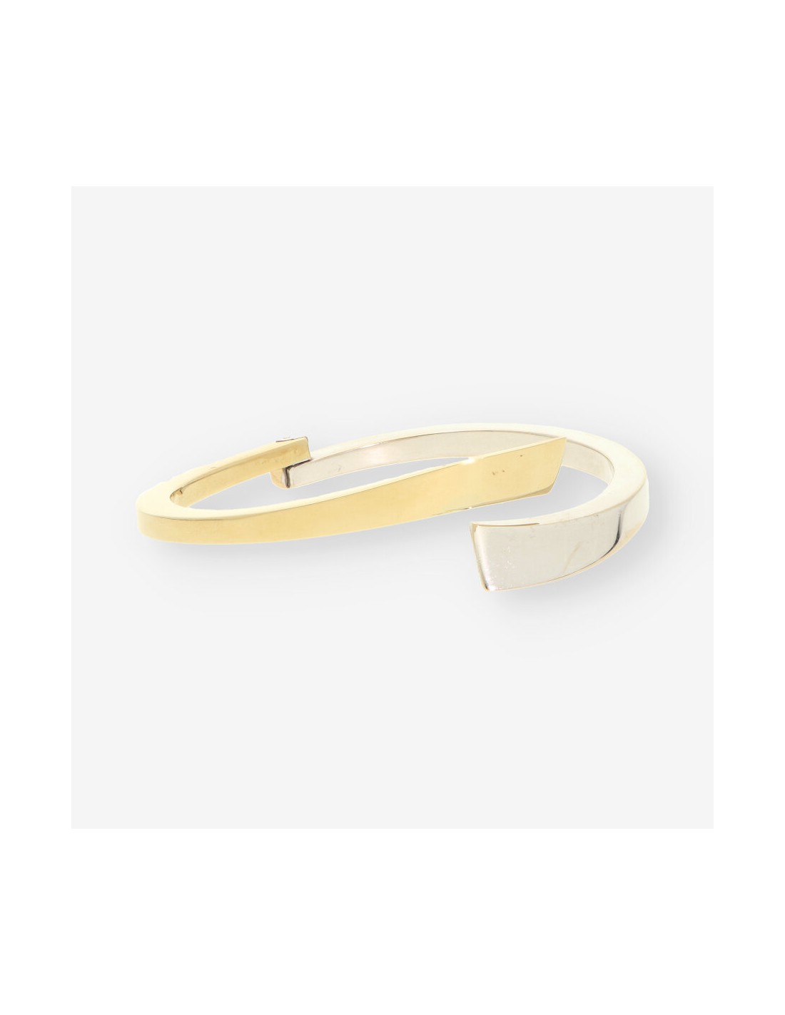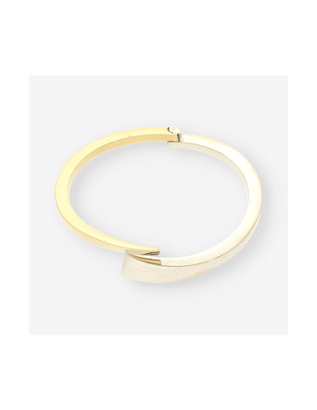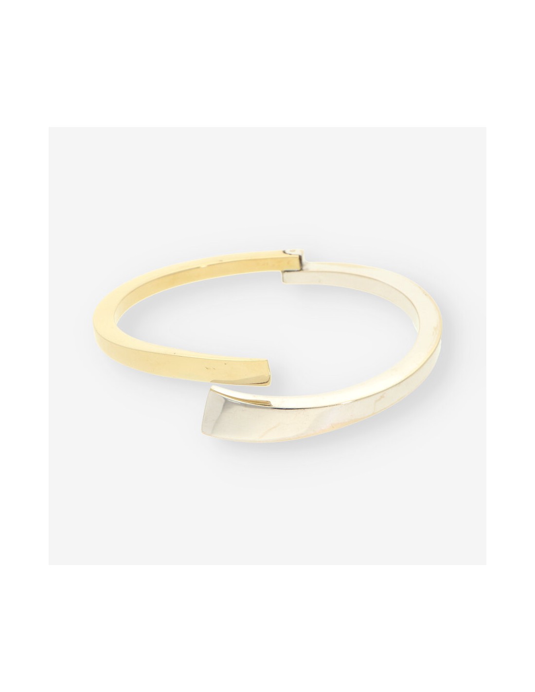 Magnifica pulsera esclava de segunda mano en oro blanco y amarillo de primera ley con un precioso diseño clásico. Un perfecto regalo. Diámetro: 6.5cm. Peso: 18.2gr.
