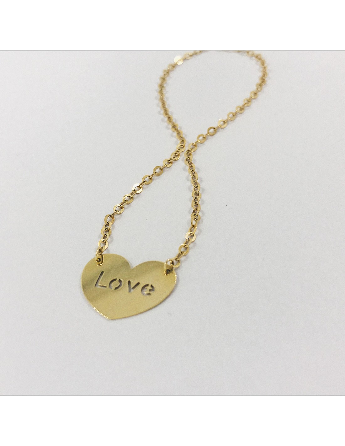 Preciosa gargantilla, en oro de 18kt de segunda mano con un acabado en forma de corazón y con la palabra “Love” en su interior. Magnifico regalo de cumpleaños. Longitud: 43cm. Peso: 2gr.