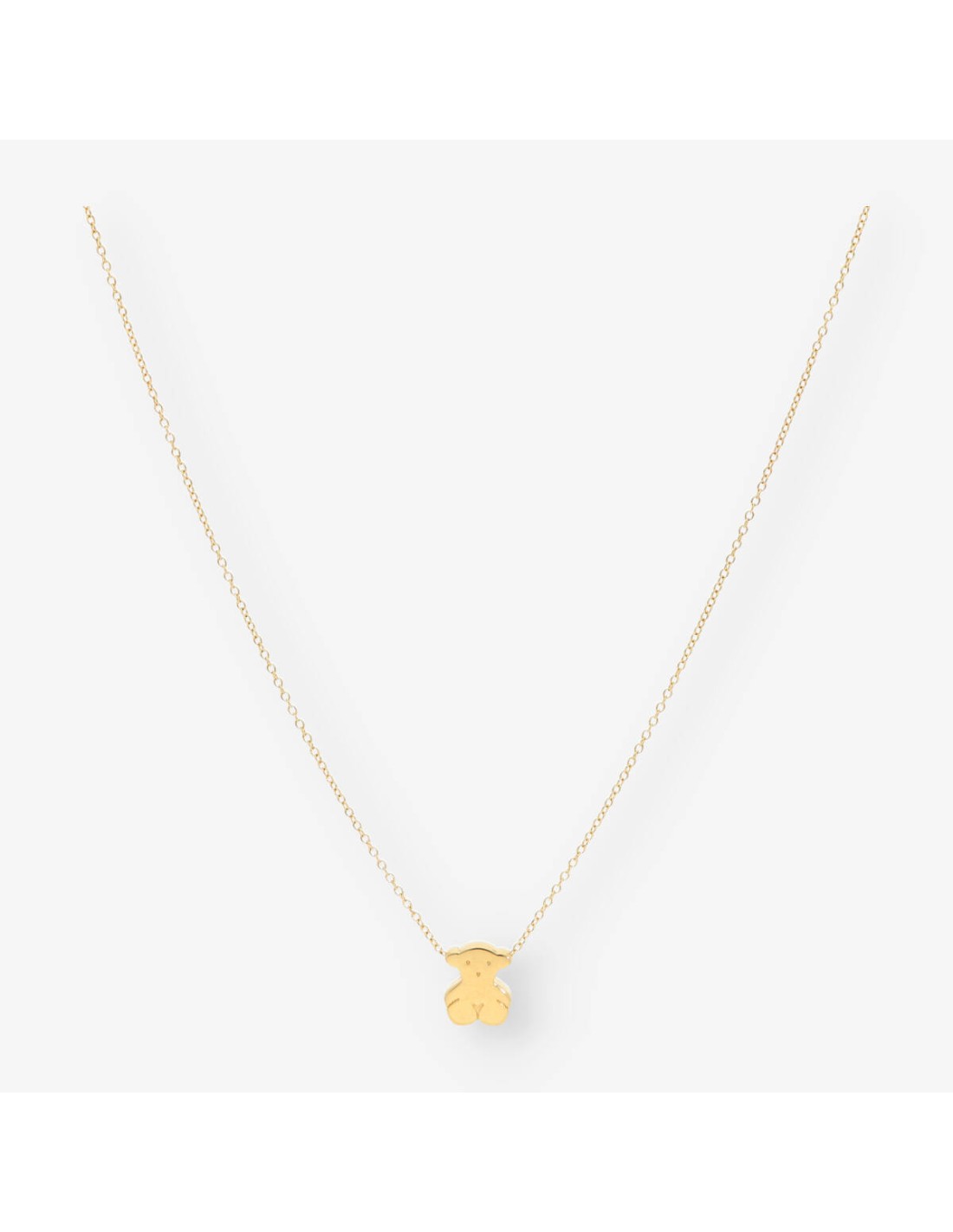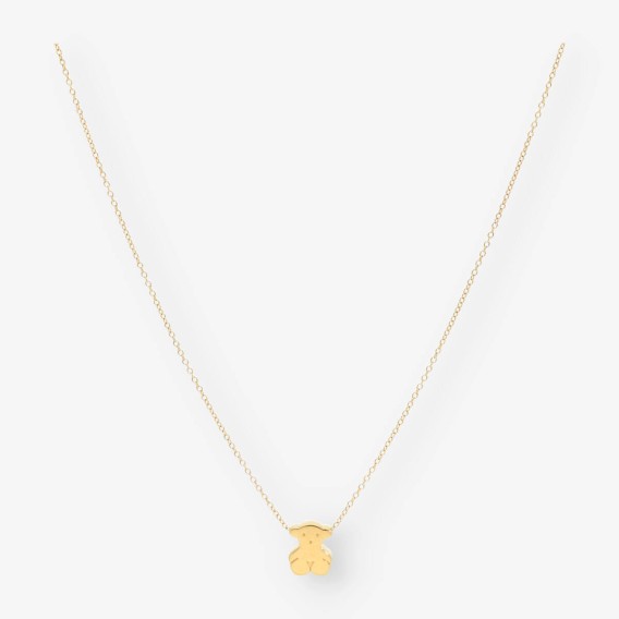 Precioso collar Tous de segunda mano en oro amarillo con el colgante en forma de la icónica firma del osito. Un perfecto regalo de cumpleaños. Longitud: 40cm. Peso: 2.6gr. Altura del osito: 1.1cm.