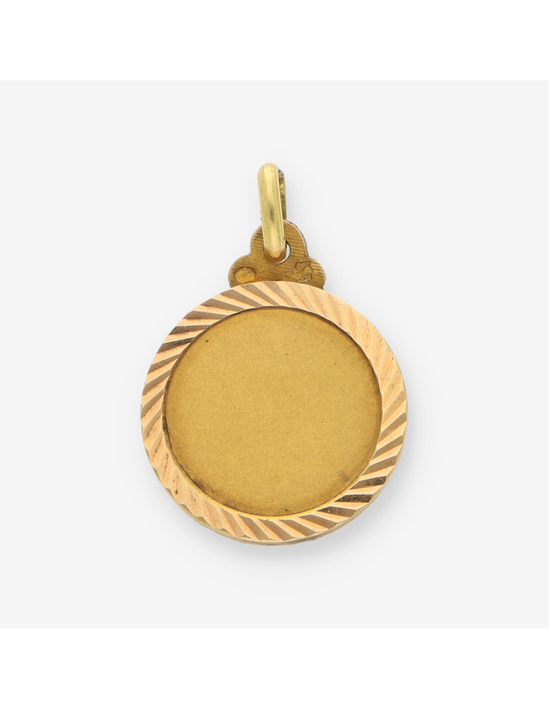 Esta delicada medalla de segunda mano está elaborada en oro amarillo de primera ley, con un peso de 3.3 gramos y un diámetro de 1.8 cm. Su diseño sencillo y elegante la convierte en una pieza versátil y atemporal, ideal para complementar cualquier estilo. Perfecta para quienes buscan una joya que combine simplicidad y elegancia, esta medalla es un símbolo de sofisticación sutil.